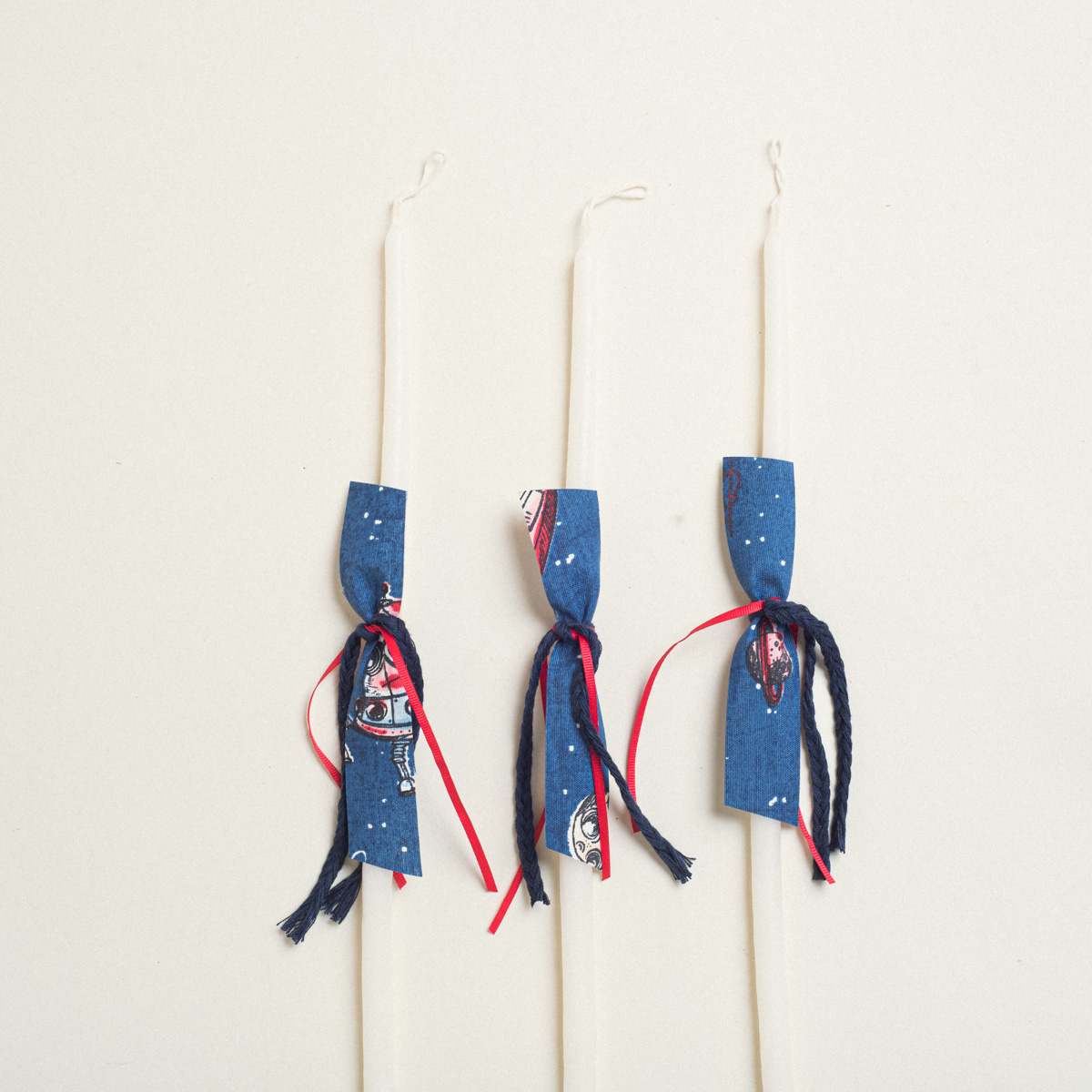 Σετ από 3 διακοσμημένα κεράκια κολυμβήθρας, ιδανικά για βάπτιση. Προσεγμένη χειροποίητη διακόσμηση με λεπτομέρειες που δίνουν κομψότητα και μοναδικότητα σε κάθε κερί.