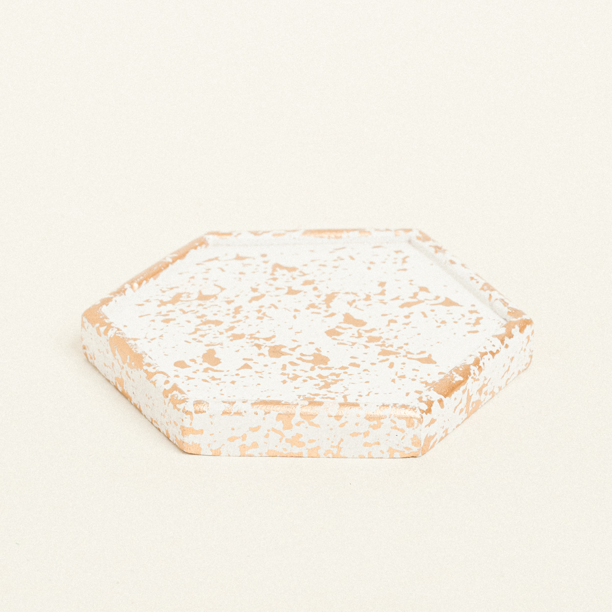 Beauty Home ΚΕΡΑΜΙΚΟ ΠΟΛΥΓΩΝΟ ΣΟΥΒΕΡ ΜΕ ΧΡΥΣΕΣ ΛΕΠΤΟΜΕΡΕΙΕΣ 9 x 10 X 1,2 cm ΛΕΥΚΟ / ΧΡΥΣΟ