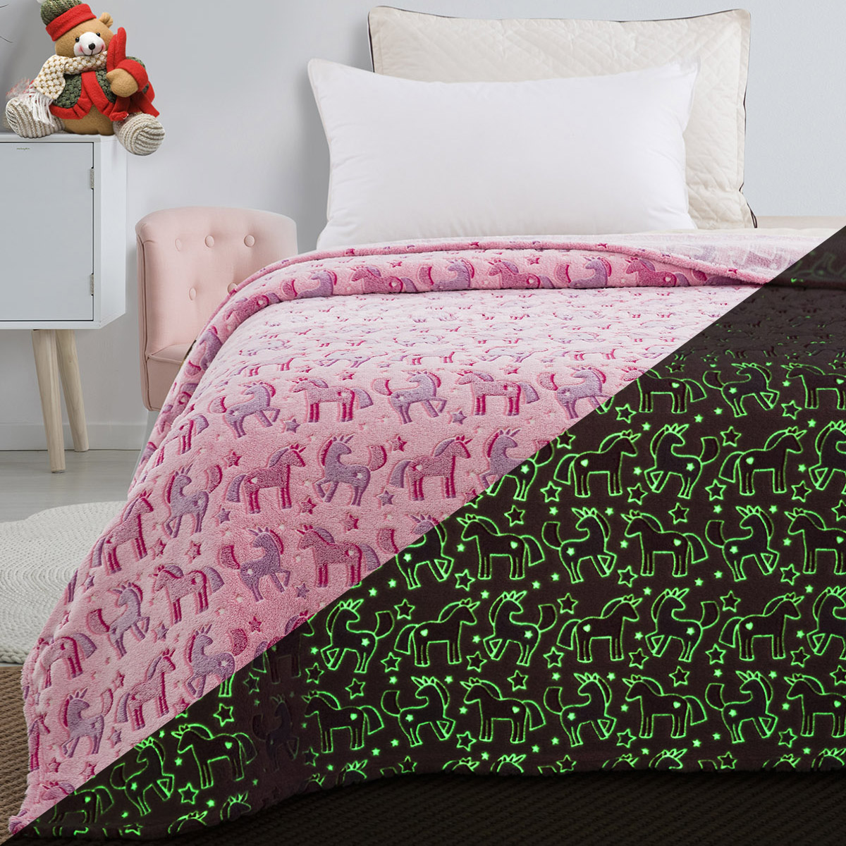 Η νέα μας κουβέρτα Flash-Fleece κατασκευάζεται από μαλακό φλις και φωσφορίζει στο σκοτάδι για να σας παρέχει ζεστασιά και παιδικά γέλια κάθε βράδυ!