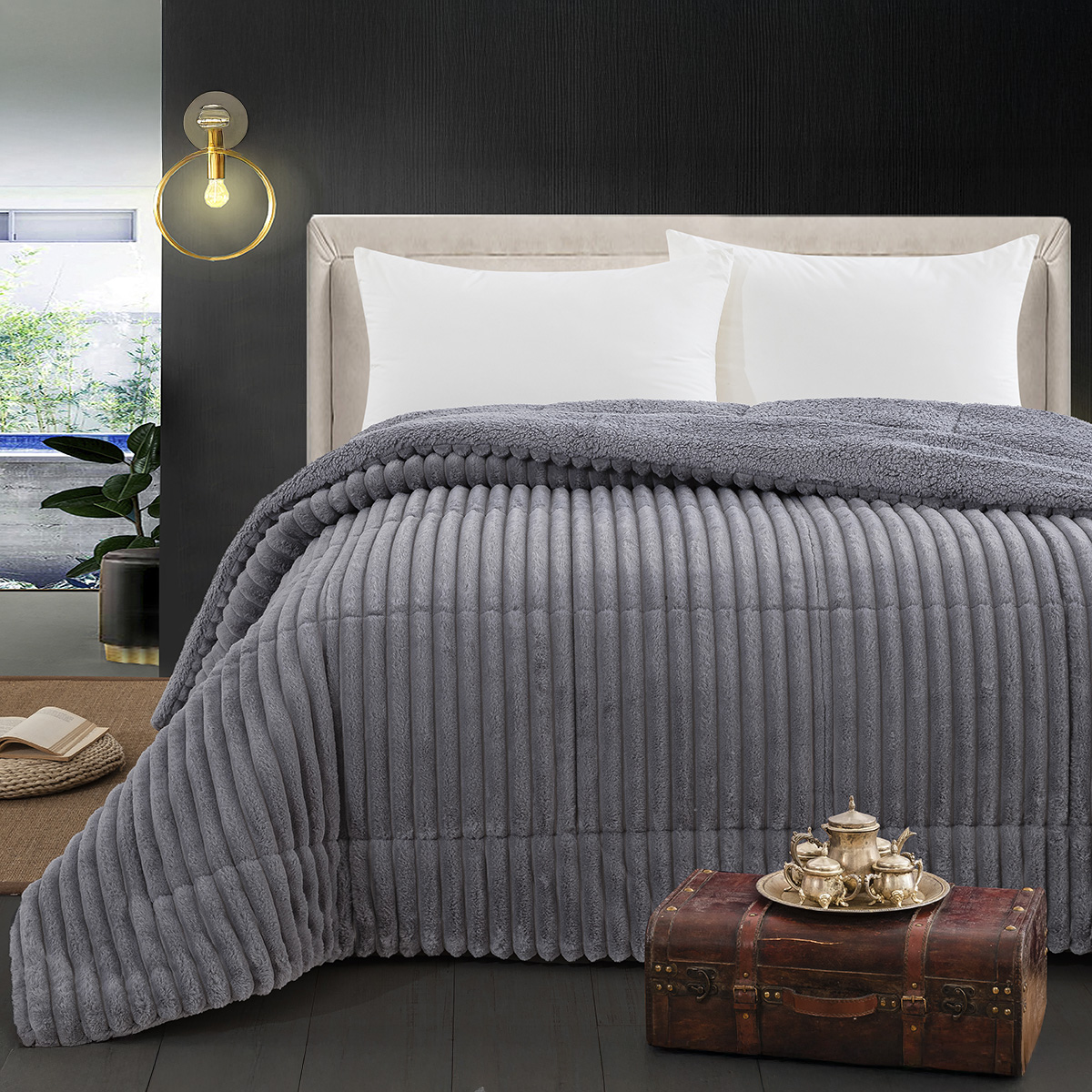 Το νέο κουβερτοπάπλωμα της Beauty Home με γούνα σε αποχρώσεις Ανθρακί και μπεζ είναι η επιτομή της κομψότητας και της ζεστασιάς. Η επάνω πλευρά είναι επενδυμένη με απαλή, αφράτη γούνα, η οποία προσφέρει αίσθηση πολυτέλειας και ζεστασιάς,και ιδιαίτερη άνεση, ιδανική για τις πιο κρύες εποχές του χρόνου. Η κάτω πλευρά είναι με sherpa, μιμείται την αίσθηση του φυσικού μαλλιού, χαρίζοντας μοναδική ζεστασιά και άνεση.