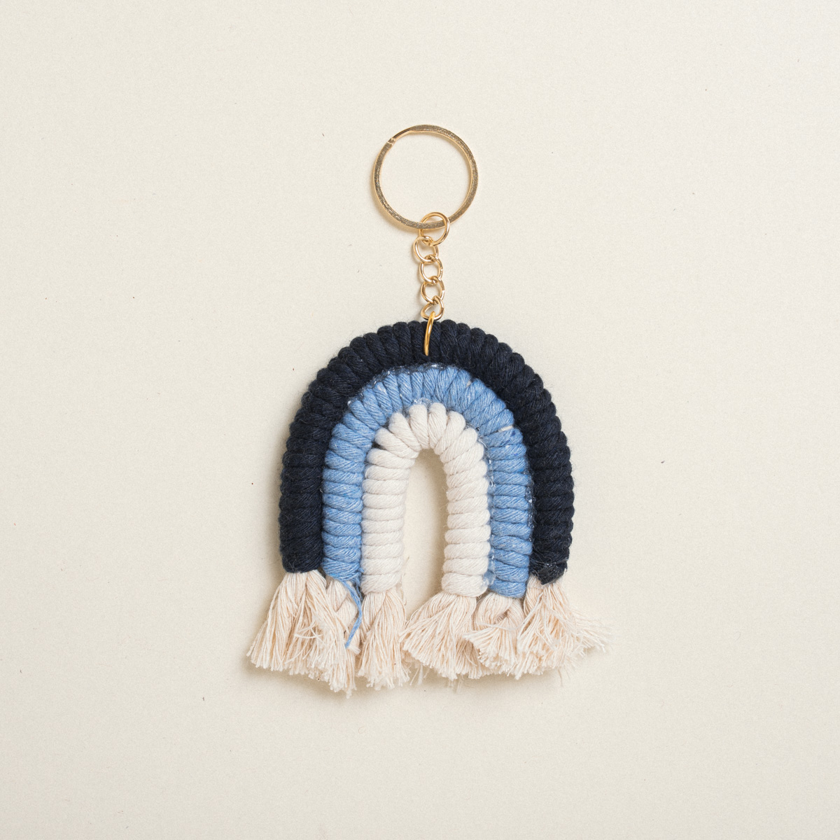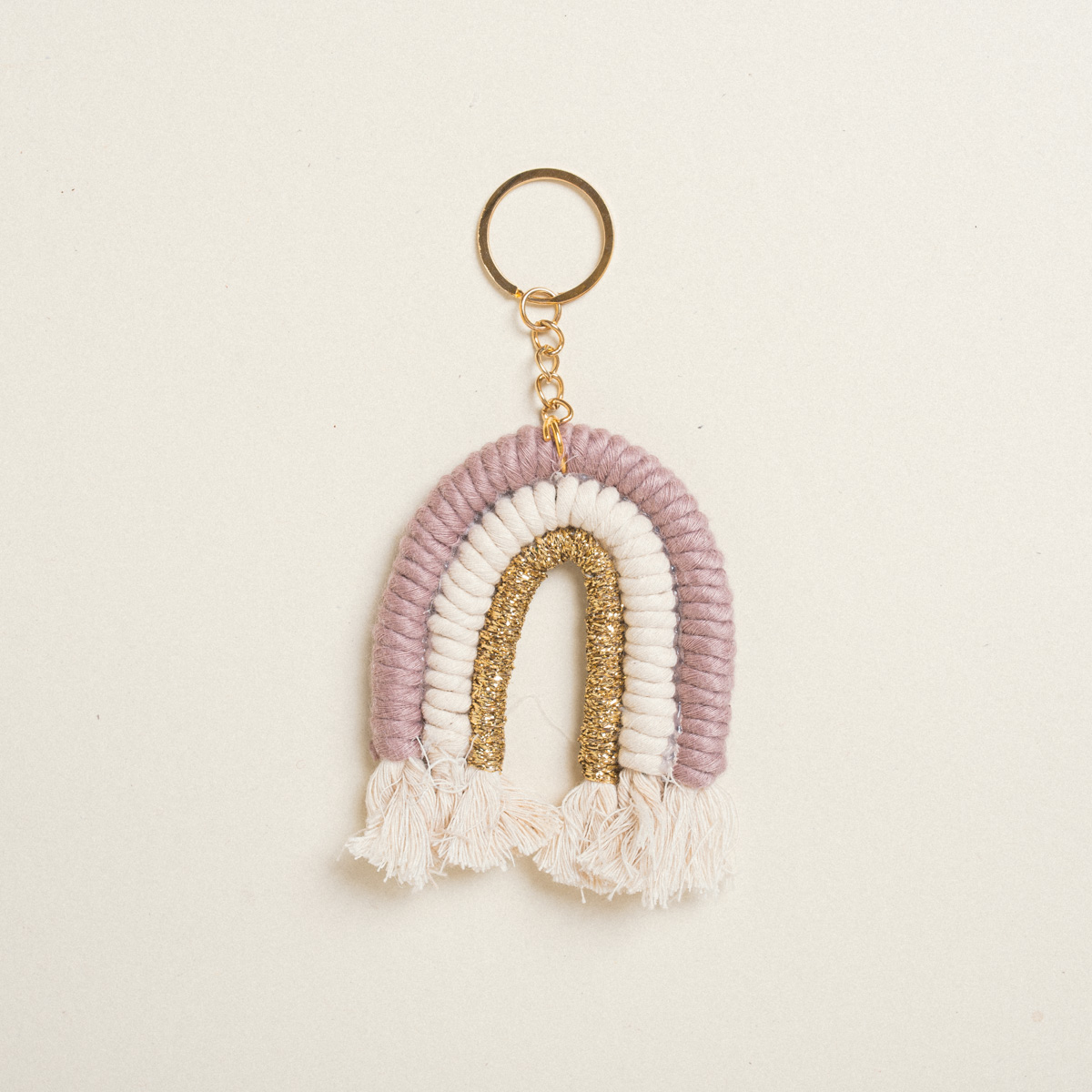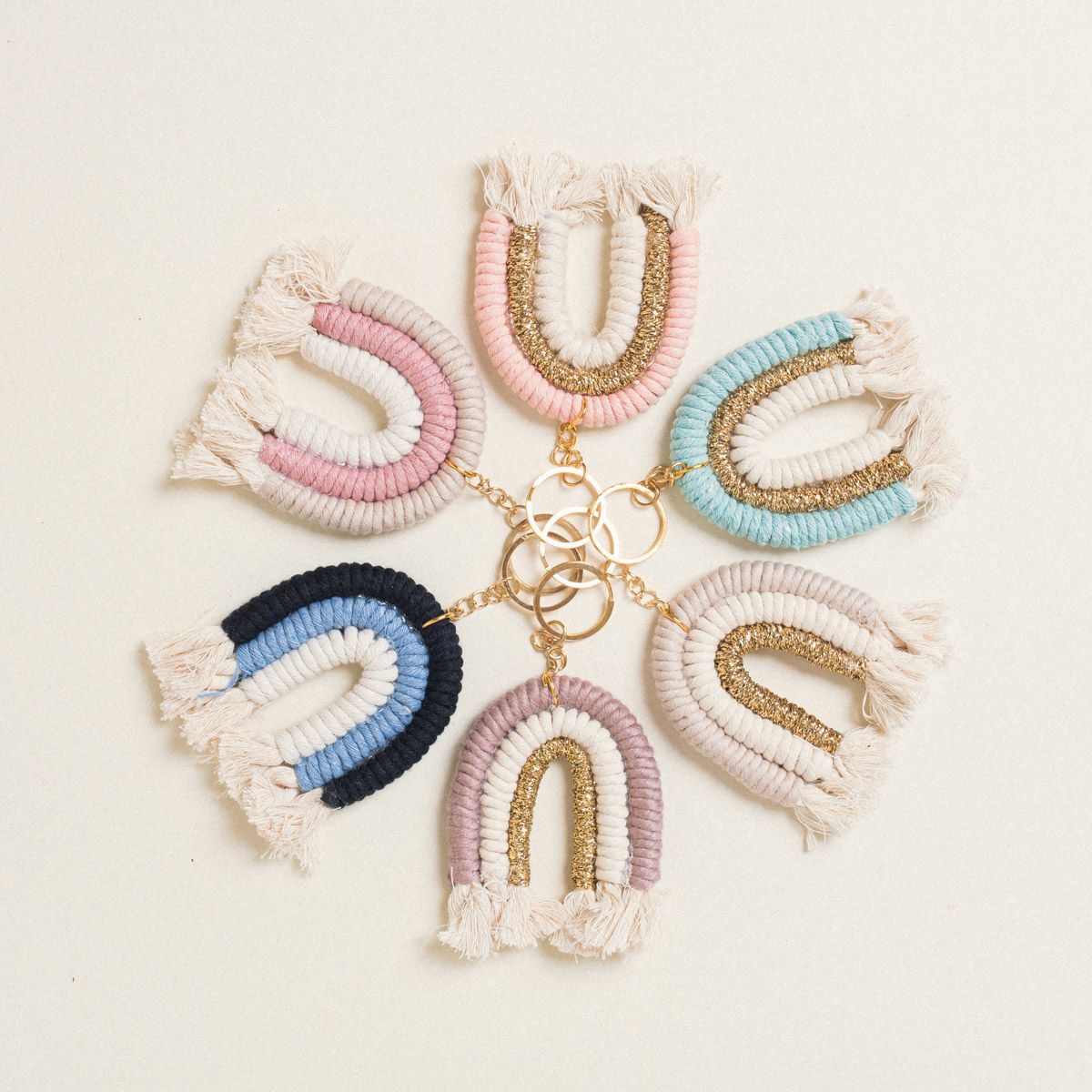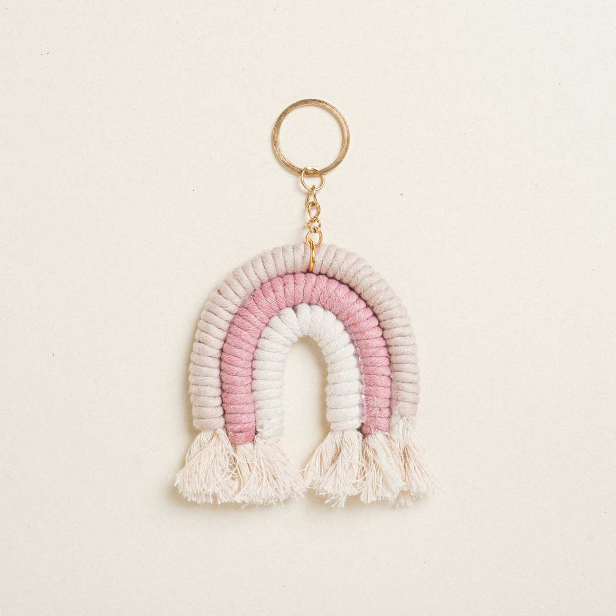 Χειροποίητο μακραμέ μπρελόκ ουράνιο τόξο 8 x 6 cm, με πολύχρωμο σχέδιο που προσφέρει μια χαρούμενη και ζωντανή πινελιά. Ιδανικό για να διακοσμήσει τα κλειδιά σας ή να χρησιμοποιηθεί ως μπομπονιέρα για γάμους, βαφτίσεις και άλλες ξεχωριστές περιστάσεις.