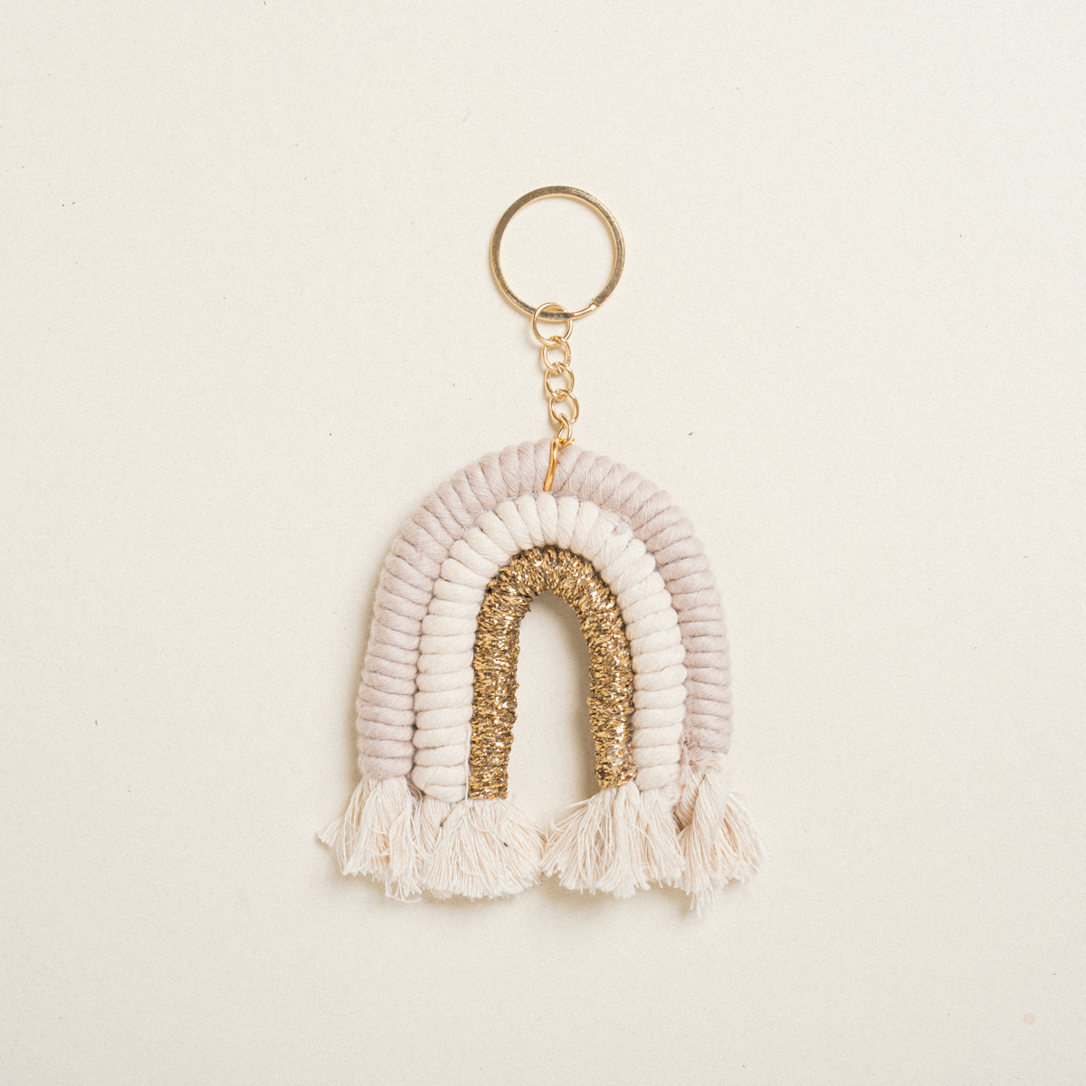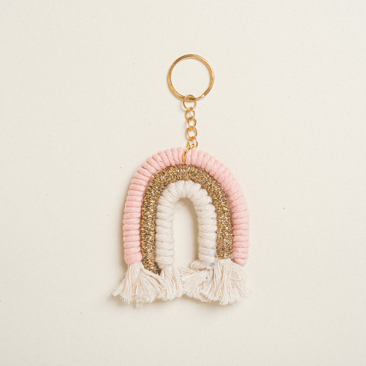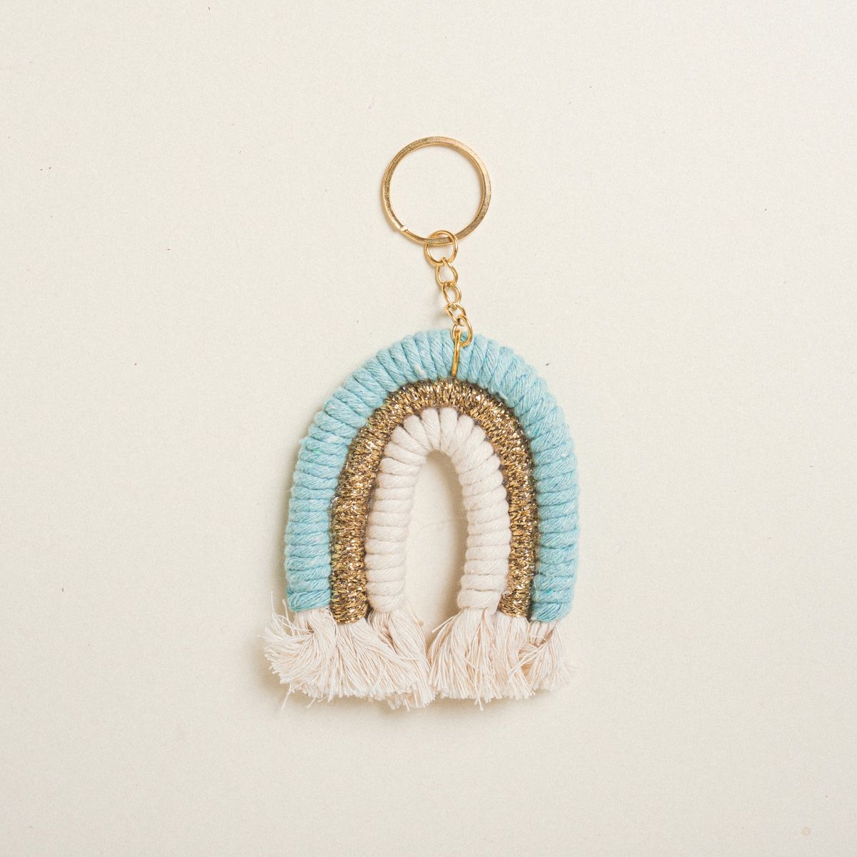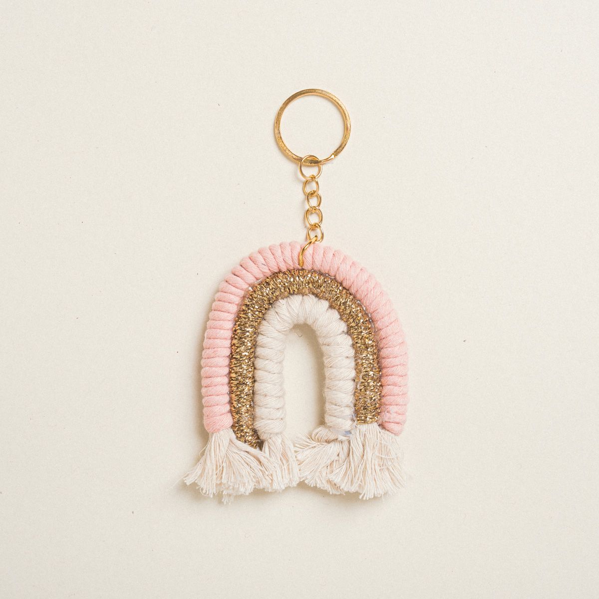 Χειροποίητο μακραμέ μπρελόκ ουράνιο τόξο 8 x 6 cm, με πολύχρωμο σχέδιο που προσφέρει μια χαρούμενη και ζωντανή πινελιά. Ιδανικό για να διακοσμήσει τα κλειδιά σας ή να χρησιμοποιηθεί ως μπομπονιέρα για γάμους, βαφτίσεις και άλλες ξεχωριστές περιστάσεις.