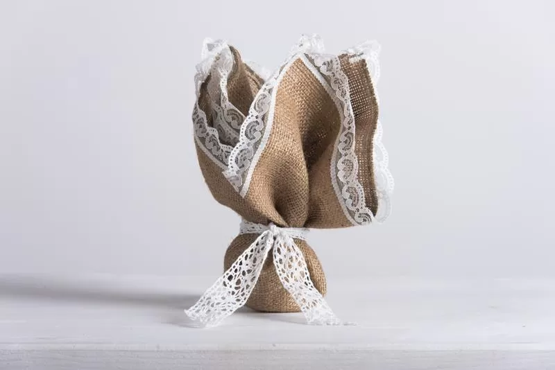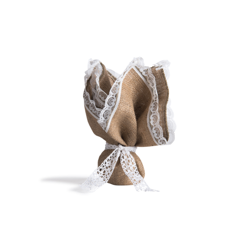 Κατασκευασμένο από ύφασμα με φυσικά νήματα ιούτης και διακοσμημένο με nylon δαντέλα