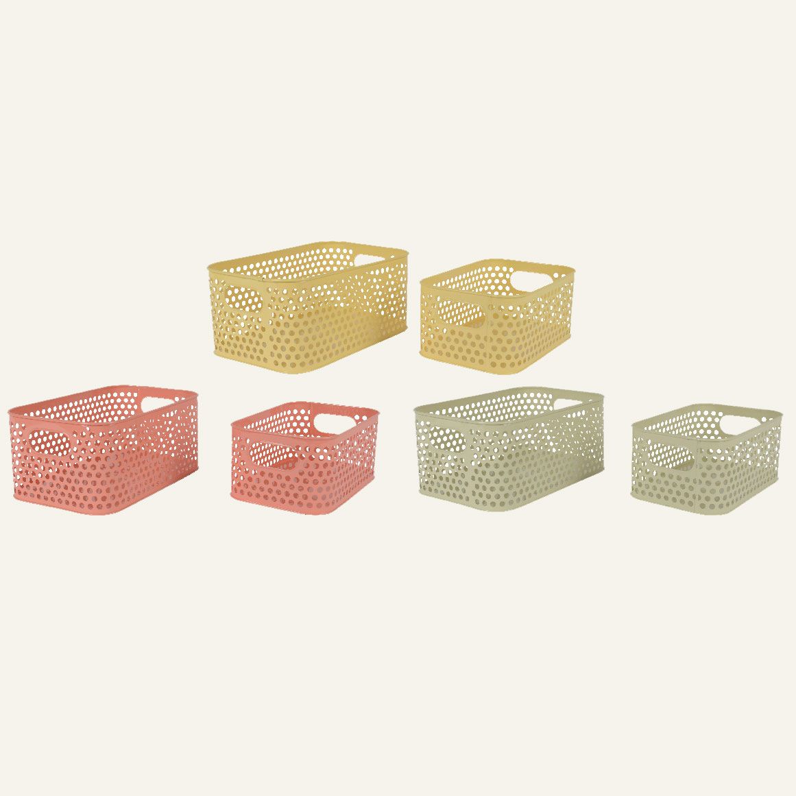 Αυτό το σετ μεταλλικών καλαθιών αποτελείται από 2 τεμάχια σε διαφορετικά μεγέθη (29.5 x 19.8 x 13 cm και 24.8 x 16.3 x 11 cm), προσφέροντας στυλάτο και λειτουργικό χώρο αποθήκευσης ή διακόσμησης. Ιδανικά για οργάνωση ρούχων, παιχνιδιών, βιβλίων ή ακόμα και ως διακοσμητικά στοιχεία σε σαλόνια, κουζίνες ή υπνοδωμάτια.