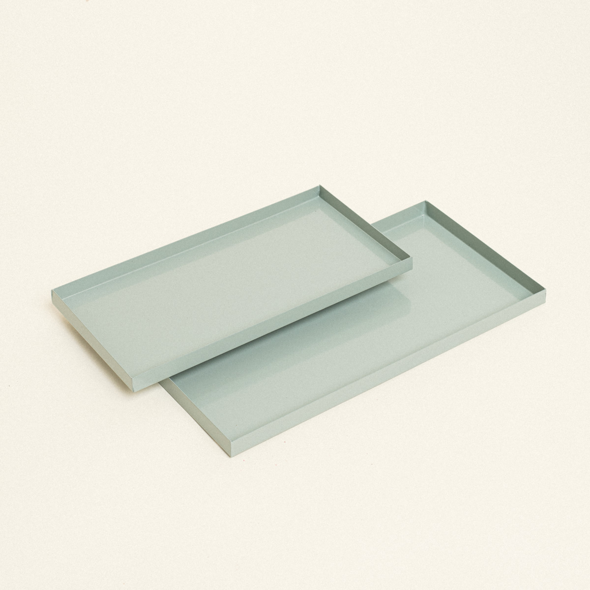 Αυτό το σετ από μεταλλικούς δίσκους, που περιλαμβάνει δύο παραλληλόγραμμα μεγέθη (28 x 14 cm και 24 x 12 cm), συνδυάζει λειτουργικότητα και στυλ. Οι δίσκοι αυτοί είναι ιδανικοί για να οργανώσετε ή να σερβίρετε τρόφιμα και ποτά με κομψότητα, προσφέροντας ταυτόχρονα μια μοντέρνα πινελιά στην διακόσμηση του χώρου σας. Ιδανικοί για καφετέριες, τραπέζια, ή ως αντικείμενα διακόσμησης.