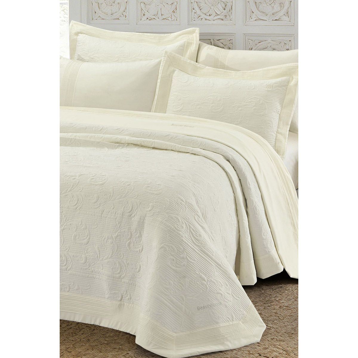Ειδικά σχεδιασμένο για να πρωταγωνιστήσει στο παραδοσιακό στρώσιμο του νυφικού κρεβατιού, το σετ της Collection Promise της Beauty Home στο απόλυτο, διαχρονικό εκρού κάνει την πιο ξεχωριστή μέρα της ζωής σας ακόμα πιο ονειρεμένη. Με υπέροχα ανάγλυφα σχέδια και αψεγάδιαστη ποιότητα, αποτελεί την ιδανική επιλογή για τον γάμο σας ή το τέλειο δώρο, καθώς προσφέρεται σε μια κομψή πολυτελή συσκευασία.