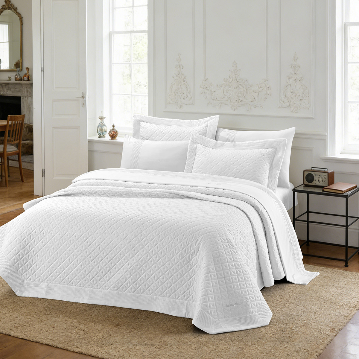 Ανανεώστε την εικόνα του υπνοδωματίου σας με την καθαρότητα του λευκού και την κομψότητα της Collection Promise της Beauty Home. Ένα εντυπωσιακό σετ κουβερλί με υπέροχες υφές, ιδανικό για να δώσει στο κρεβάτι σας μια πλούσια, “γεμάτη” και αριστοκρατική εμφάνιση.