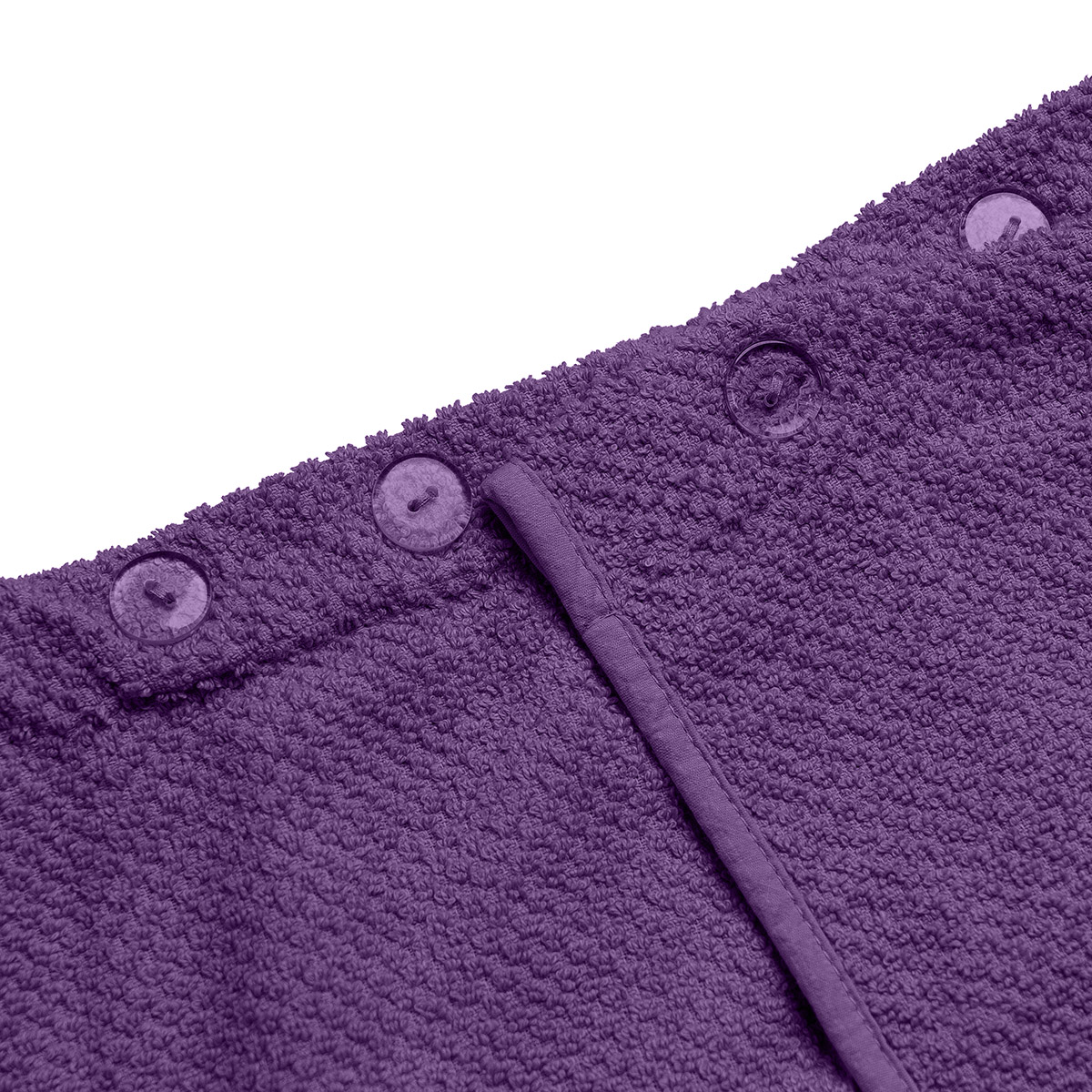 Το ύφασμα από 100% combed cotton προσφέρει απαλή αίσθηση και απορροφητικότητα, ενώ το λάστιχο στην πλάτη εξασφαλίζει ότι η πετσέτα θα παραμείνει σταθερή και θα προσφέρει άνεση κατά τη χρήση. Τα κουμπιά προσθέτουν ένα στοιχείο πρακτικότητας, επιτρέποντας να τυλιχθείτε γρήγορα και εύκολα στην πετσέτα και να τη διατηρήσετε στη θέση της.