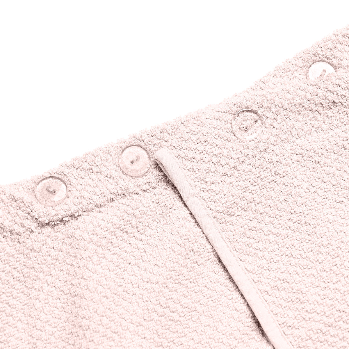 Το ύφασμα από 100% combed cotton προσφέρει απαλή αίσθηση και απορροφητικότητα, ενώ το λάστιχο στην πλάτη εξασφαλίζει ότι η πετσέτα θα παραμείνει σταθερή και θα προσφέρει άνεση κατά τη χρήση. Τα κουμπιά προσθέτουν ένα στοιχείο πρακτικότητας, επιτρέποντας να τυλιχθείτε γρήγορα και εύκολα στην πετσέτα και να τη διατηρήσετε στη θέση της.