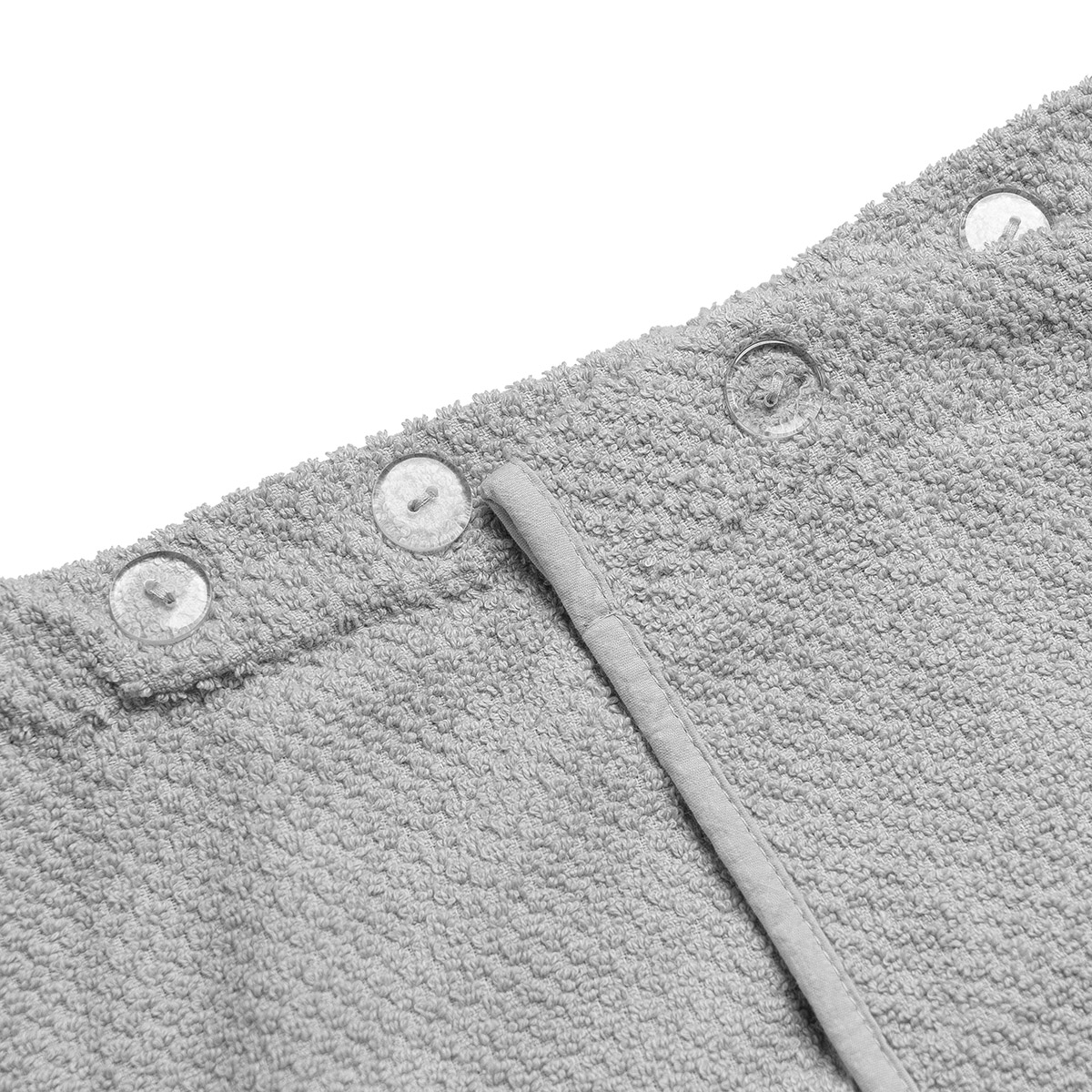 Το ύφασμα από 100% combed cotton προσφέρει απαλή αίσθηση και απορροφητικότητα, ενώ το λάστιχο στην πλάτη εξασφαλίζει ότι η πετσέτα θα παραμείνει σταθερή και θα προσφέρει άνεση κατά τη χρήση. Τα κουμπιά προσθέτουν ένα στοιχείο πρακτικότητας, επιτρέποντας να τυλιχθείτε γρήγορα και εύκολα στην πετσέτα και να τη διατηρήσετε στη θέση της.