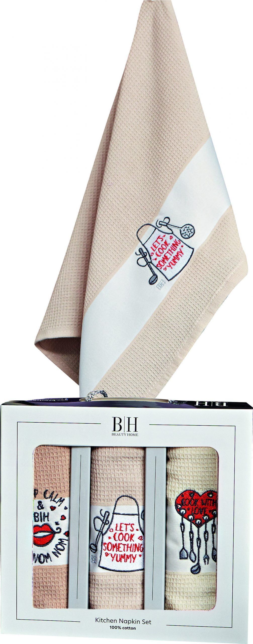 Σετ Ποτηρόπανα 3 Τεμαχίων Beauty Home– 100% Βαμβακερά με Κέντημα & Συσκευασία Δώρου