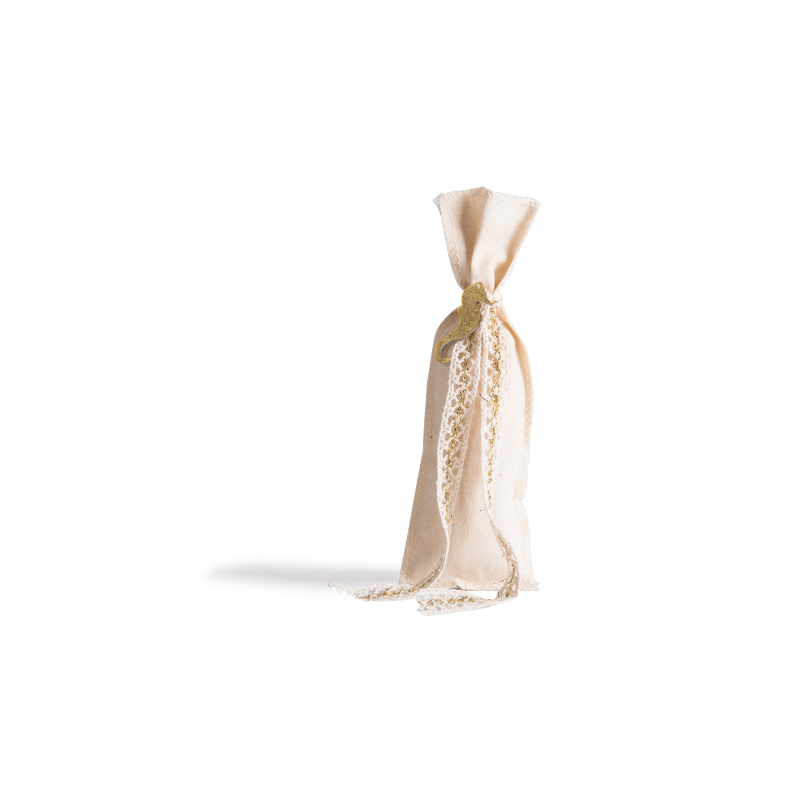 Υφασμάτινο Πουγκί Διαστάσεις 6 x 19 cm Σύνθεση 80% Βαμβάκι – 20% Polyester Το υφασμάτινο πουγκί μπορεί να χρησιμοποιηθεί για την δημιουργία μπομπονιέρας Γάμου και Βάπτισης ή ως υλικό συσκευασίας για κοσμήματα, γούρια και χειροποίητα ειδή. Το ιδιάιτερο μακρόστενο σχήμα του αποτελεί βάση για μια κομψή και πρωτότυπη μπομπονιέρα. Το πουγκί είναι υλικό που απελευθερώνει την δημιουργικότητα, μπορεί να συνδυαστεί με κορδόνια, κορδέλες και άλλα στοιχεία. Το πουγκί είναι κατασκευασμένο με ύφασμα πιστοποιημένο με Oeko-tex Standard 100 Product class II Σημαντική διευκρίνηση – Το προϊόν αφορά μόνο στο πουγκί, τα υλικά που χρησιμοποιήθηκαν αποτελούν μέρος της παρουσίασης του προιόντος και δεν συμπεριλαμβάνονται.