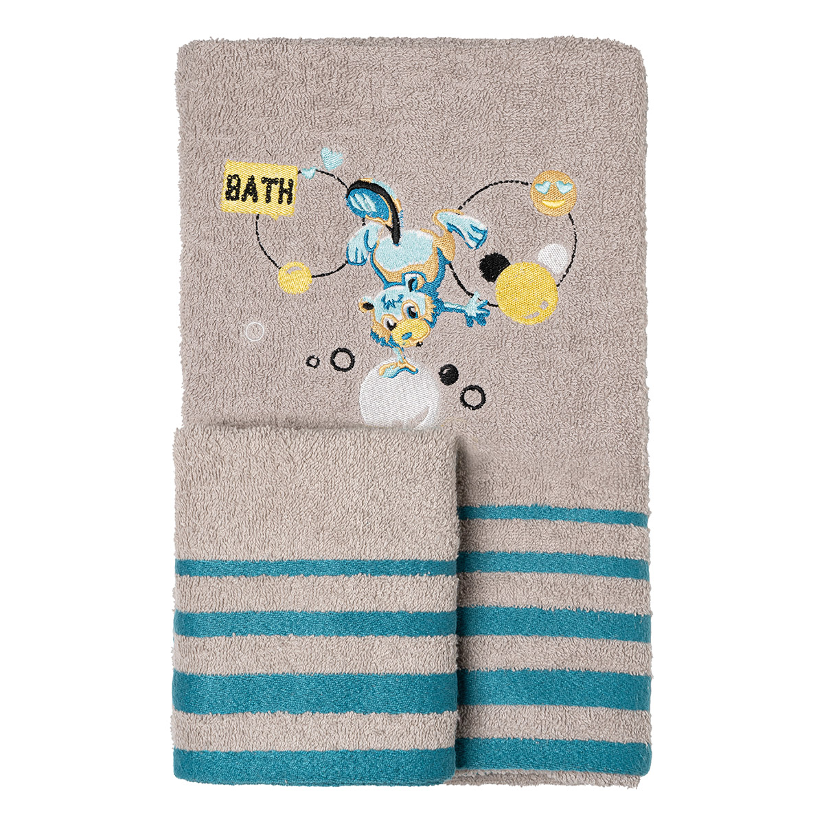 Σετ πετσέτες 2 τεμαχίων ( 40×70 + 70×130 ), κατασκευασμένη από 100% βαμβάκι με χαρούμενο κέντημα.