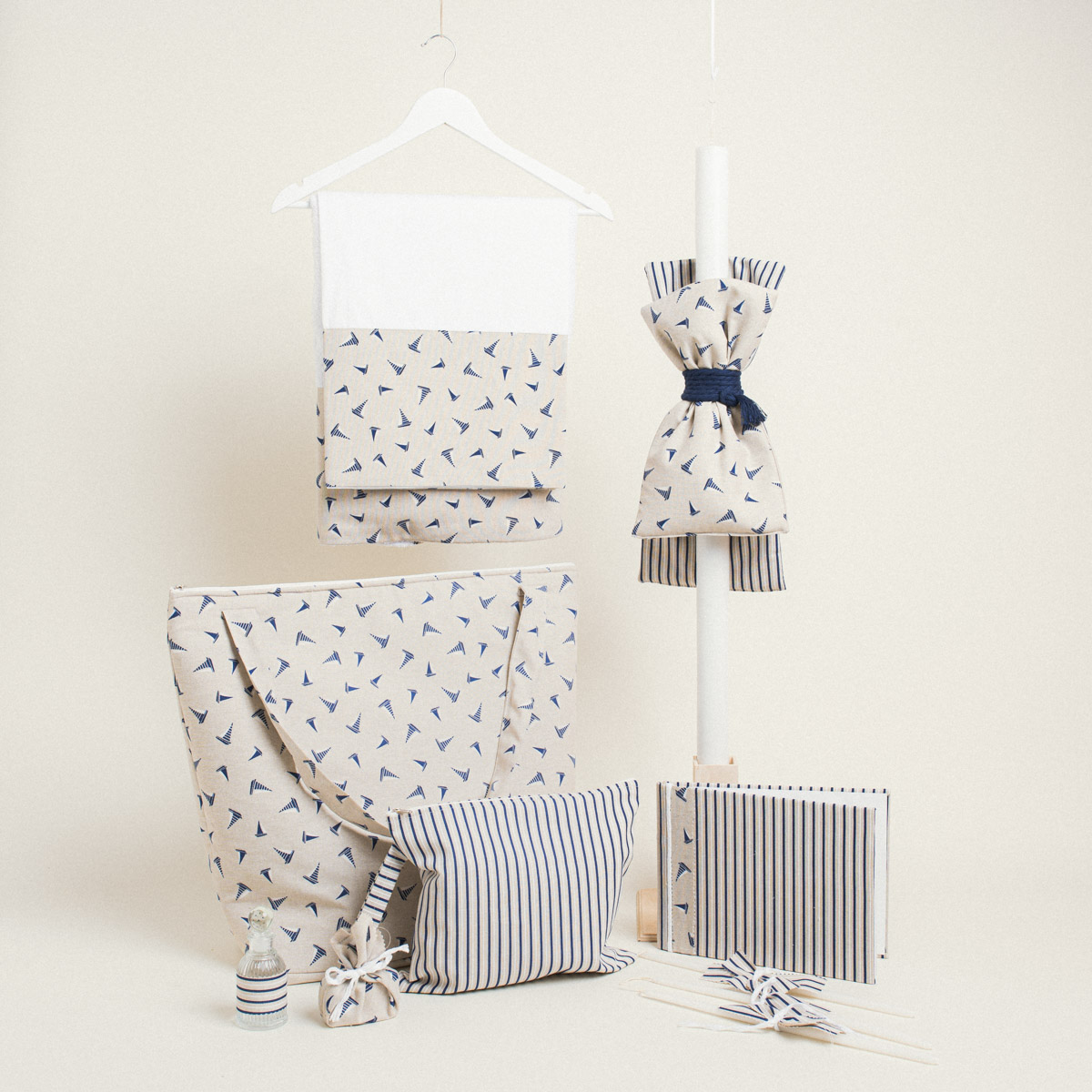 Ένα χαριτωμένο και παιχνιδιάρικο σετ βάπτισης με θέμα τα μίνι ιστιοφόρα και ριγέ σχέδιο, ιδανικό για μια βάπτιση γεμάτη αέρα ελευθερίας και θαλάσσια ατμόσφαιρα.