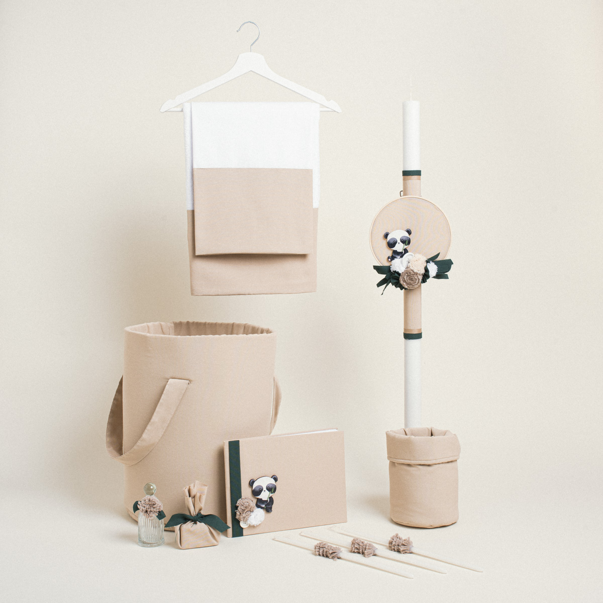 Ένα γλυκό και χαρούμενο σετ βάπτισης με θέμα τον αγαπημένο αρκούδο “Πάντα”, ιδανικό για μια βάπτιση γεμάτη τρυφερότητα και αθωότητα.