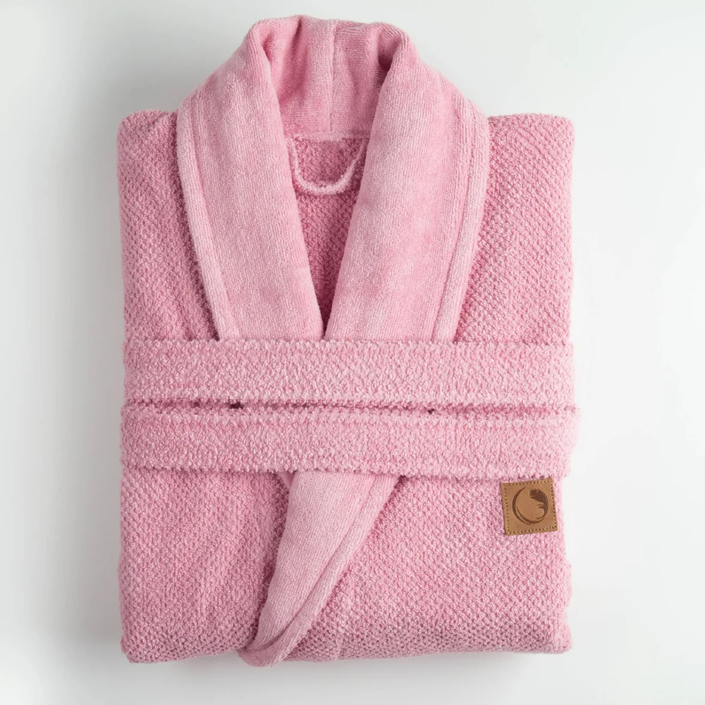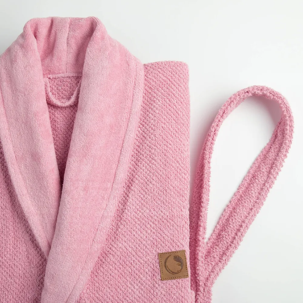 Μπουρνούζι ενηλίκων με βελούδινο γιακά, από ύφασμα φροτέ πενιέ 420 γρ., 100% βαμβακερό, μονόχρωμο, χρώμα ροζέ.Διατίθεται σε 4 διαφορετικά χρώματα.