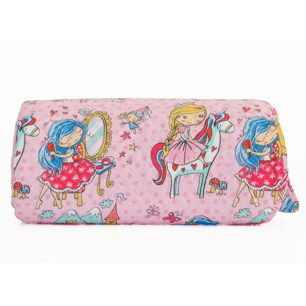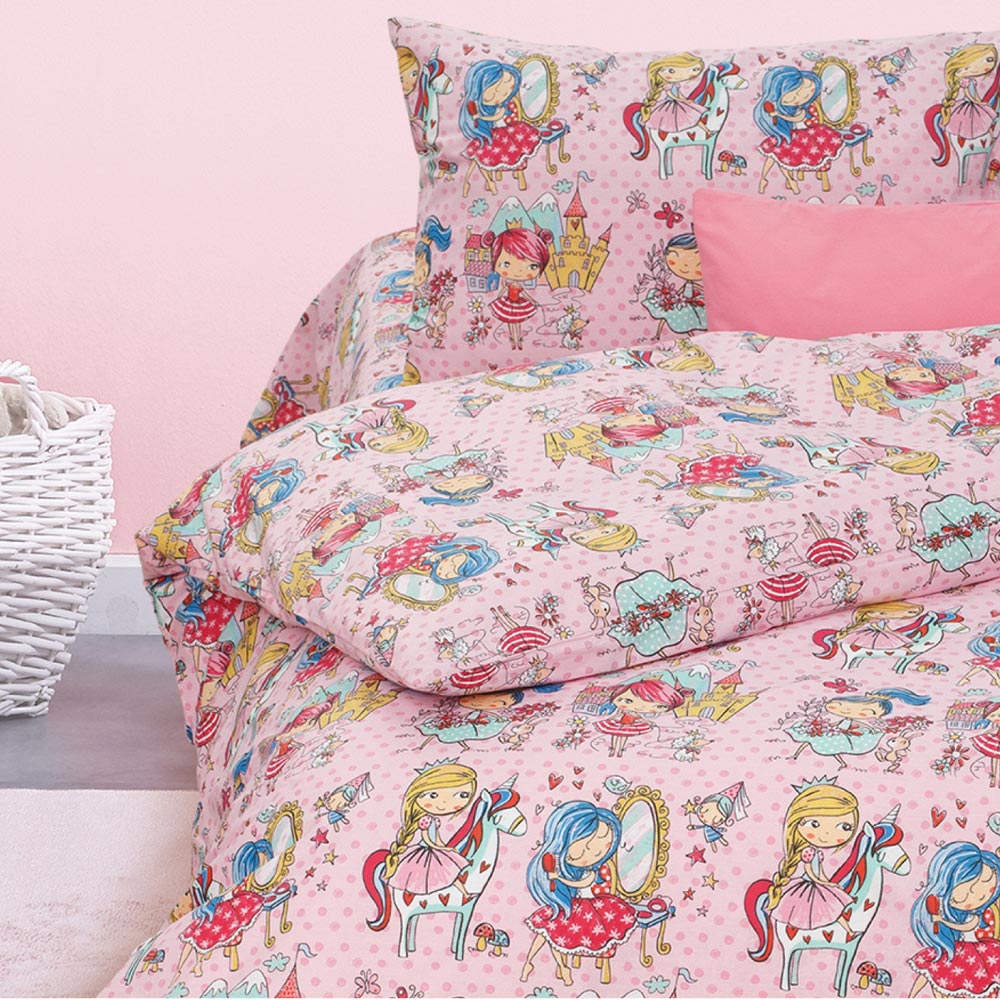 Κουβερλί μονό από ύφασμα 100% βαμβακερό, εμπριμέ, ροζ, με γραμμικό πολύγαζο σχέδιο.
