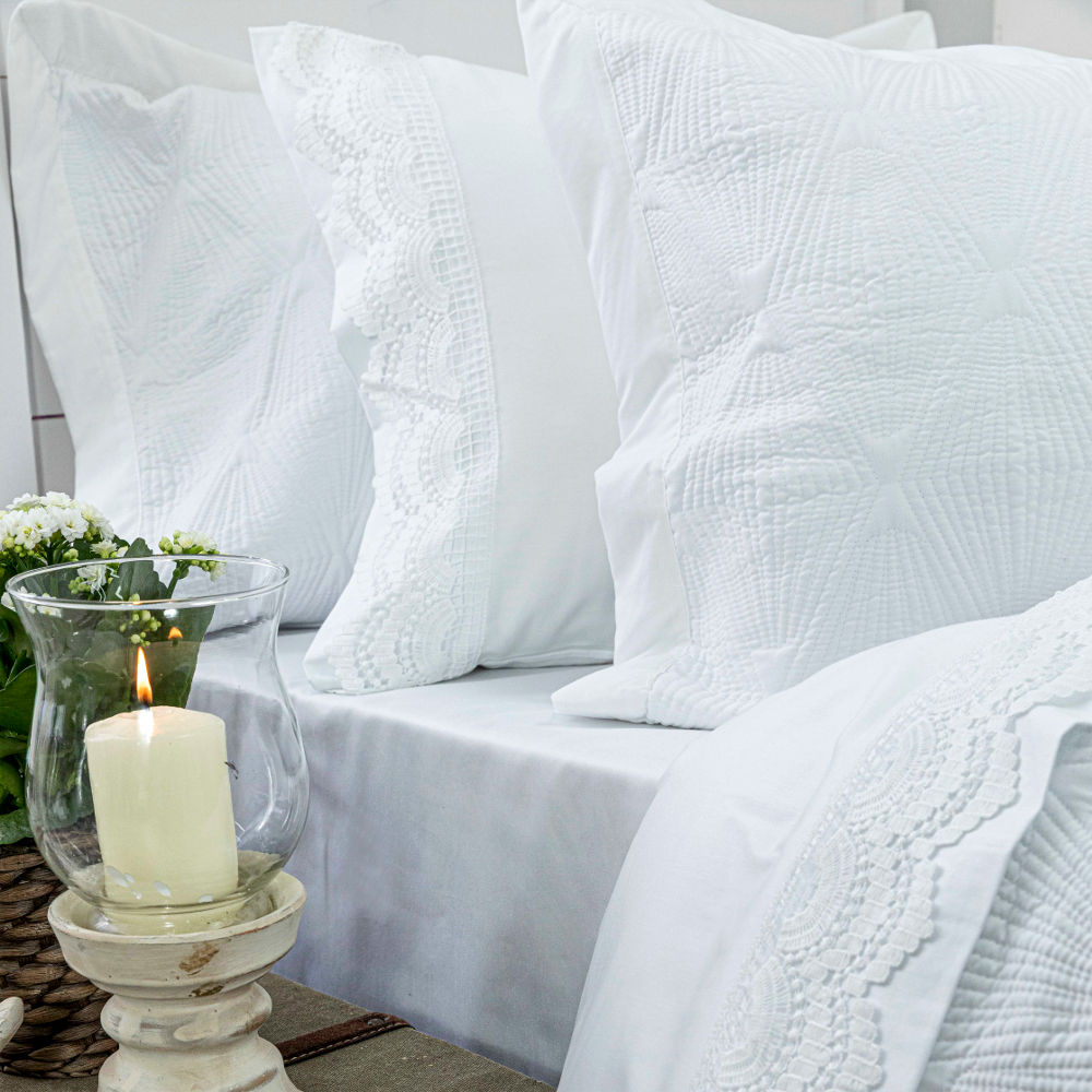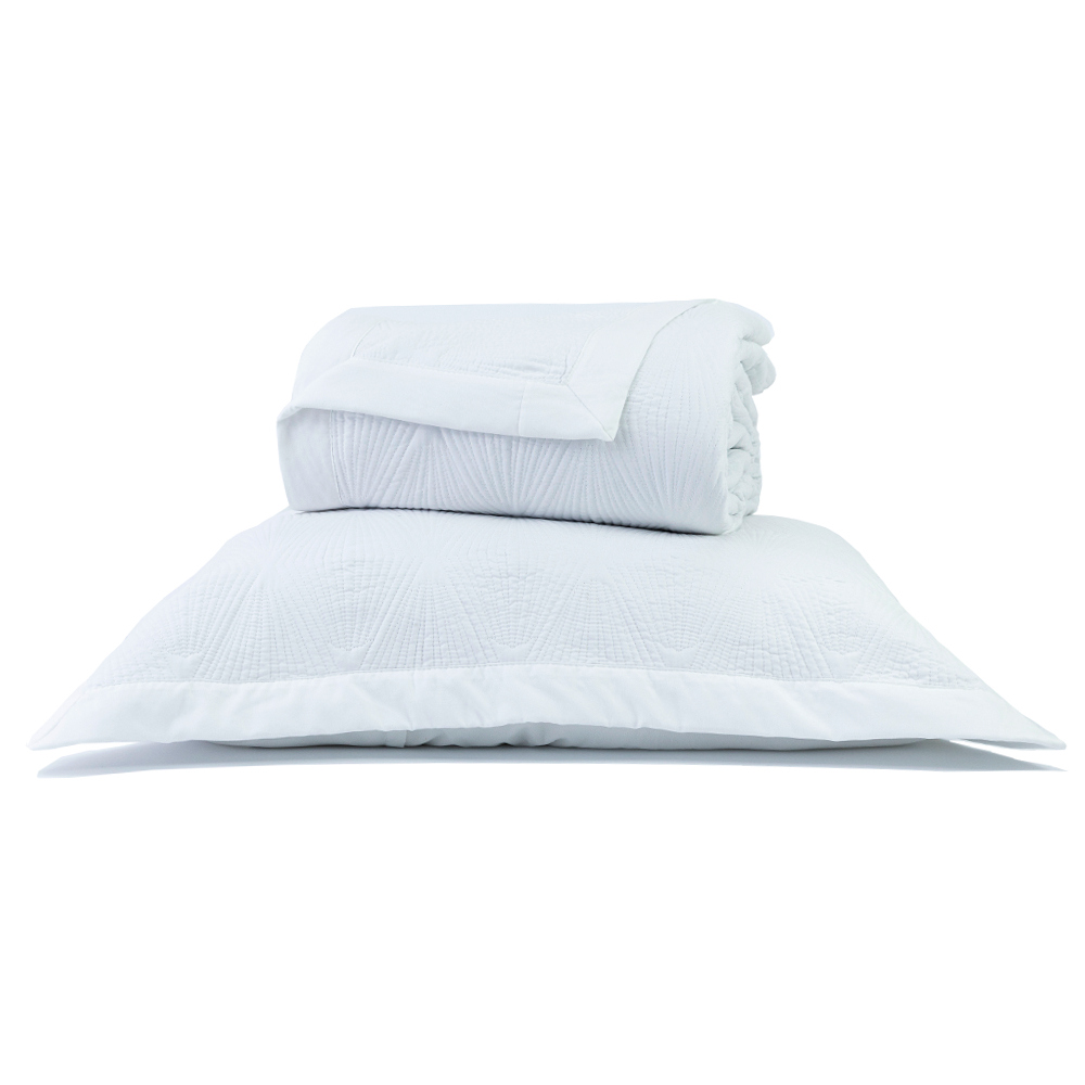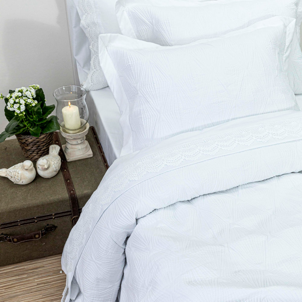 Σετ κουβερλί πολυτελείας, υπέρδιπλο, με μαξιλαροθήκες oxford style, από ύφασμα microfiber, 100% πολυέστερ, με γραμμικό, κεντημένο σχέδιο και μονόχρωμη μπορντούρα, χρώμα λευκό.