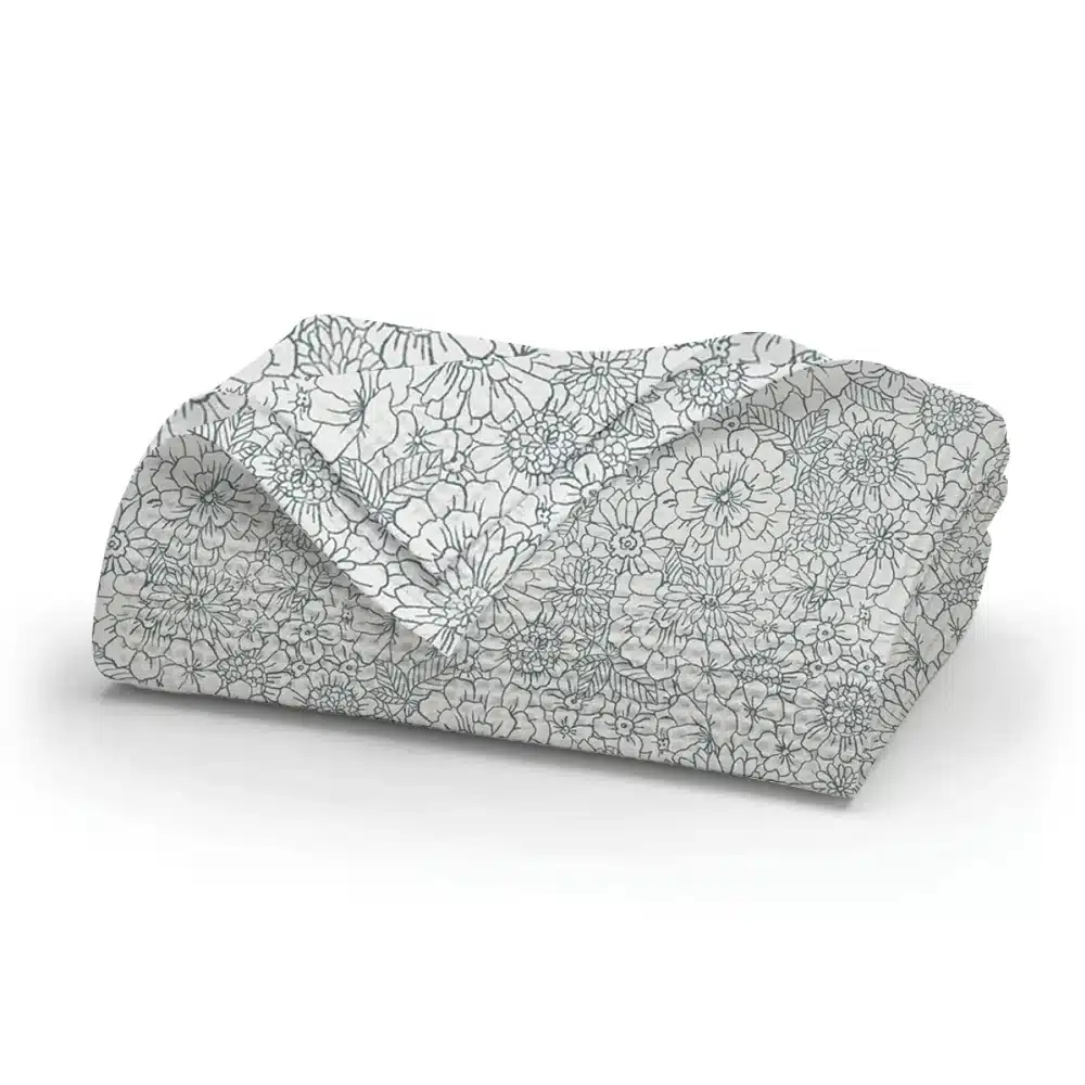 Κουβέρτα καλοκαιρινή υπέρδιπλη από ύφασμα πικέ waffle, 100% βαμβακερό, εμπριμέ, φλοράλ, σε χρώμα πετρόλ.