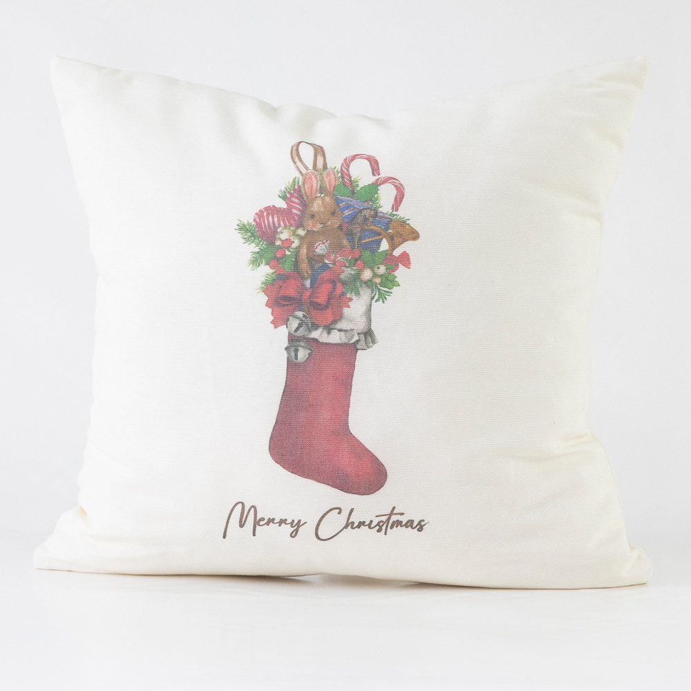 Μαξιλάρι φιγούρας από ύφασμα λονέτα, 100% βαμβακερό, με φερμουάρ και ψηφιακή εκτύπωση, σε διάφορα χριστουγεννιάτικα σχέδια.(Χωρίς γέμισμα).