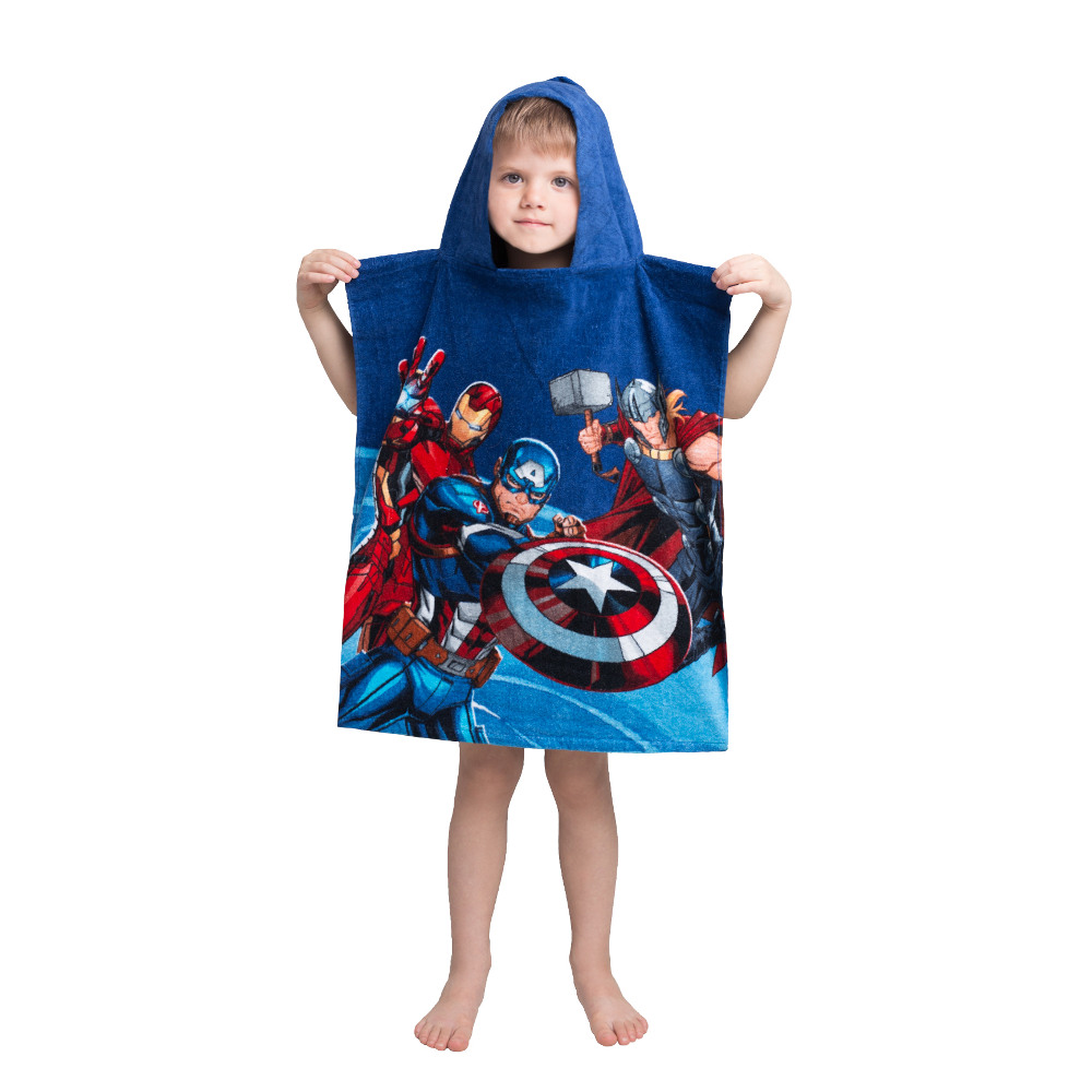 Παιδικό πόντσο από ύφασμα βελούδο,100% βαμβακερό, εμπριμέ, σχέδιο Avengers. Αυθεντικό προϊόν Marvel.