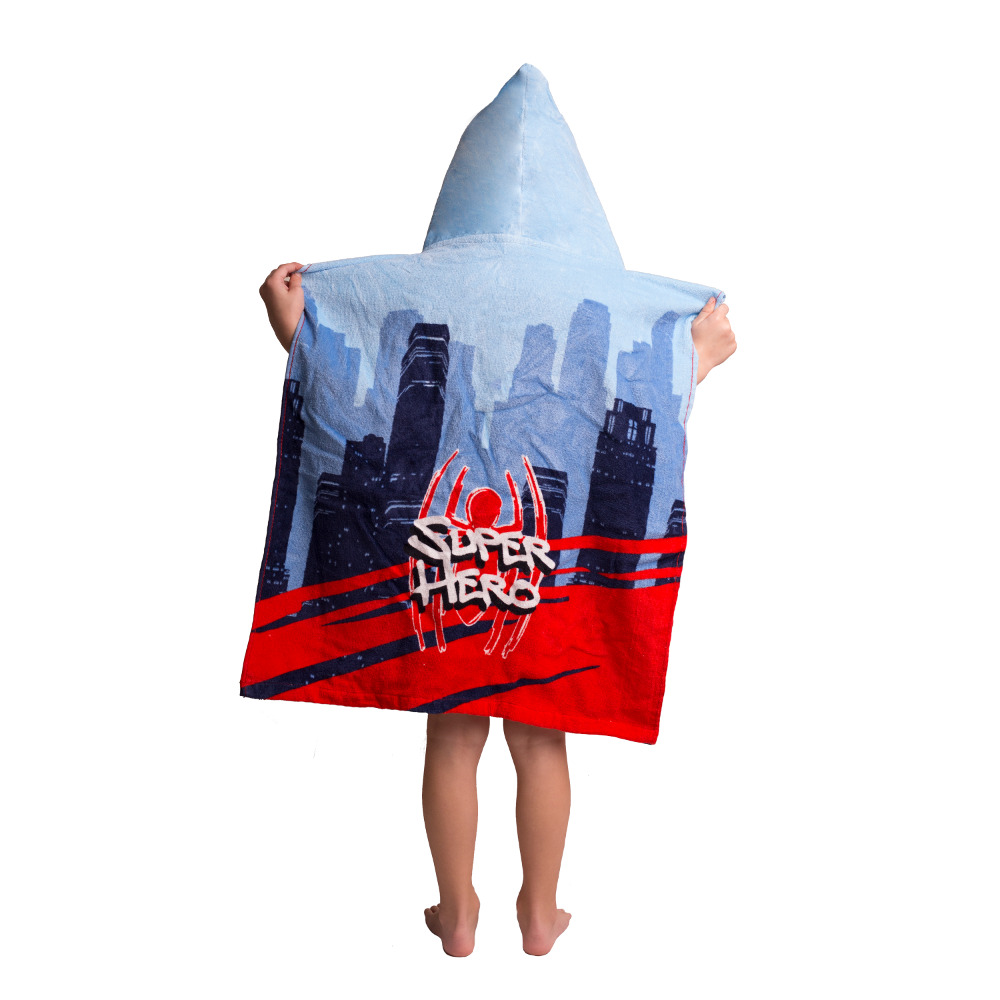 Παιδικό πόντσο από ύφασμα βελούδο,100% βαμβακερό, εμπριμέ, σχέδιο Spiderman. Αυθεντικό προϊόν Marvel.