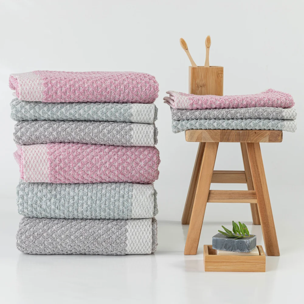 Πετσέτα προσώπου από ύφασμα ζακάρ φροτέ, πενιέ 550 γρ, 100% βαμβακερό, μονόχρωμη, με γεωμετρικό σχέδιο και κρόσσι. Διατίθεται σε 3 διαφορετικά χρώματα.