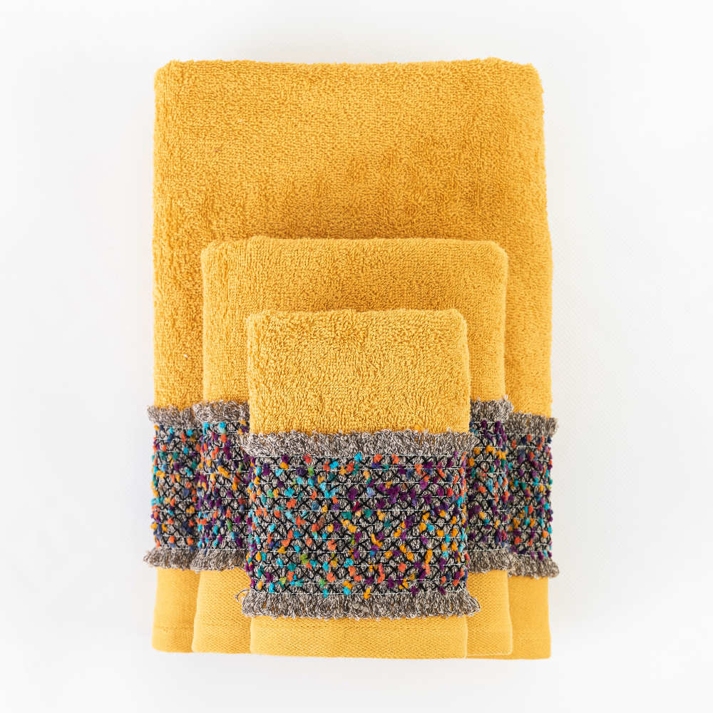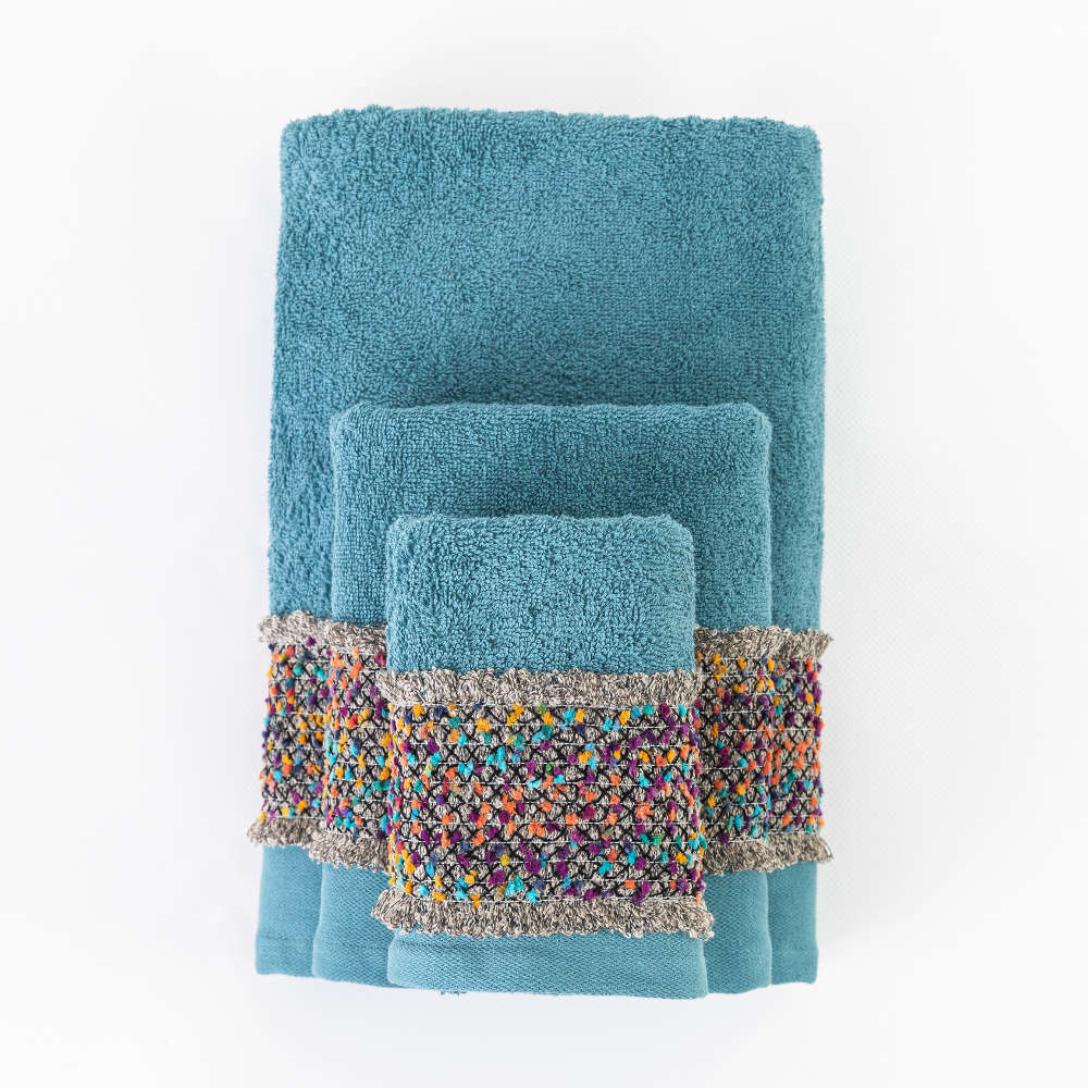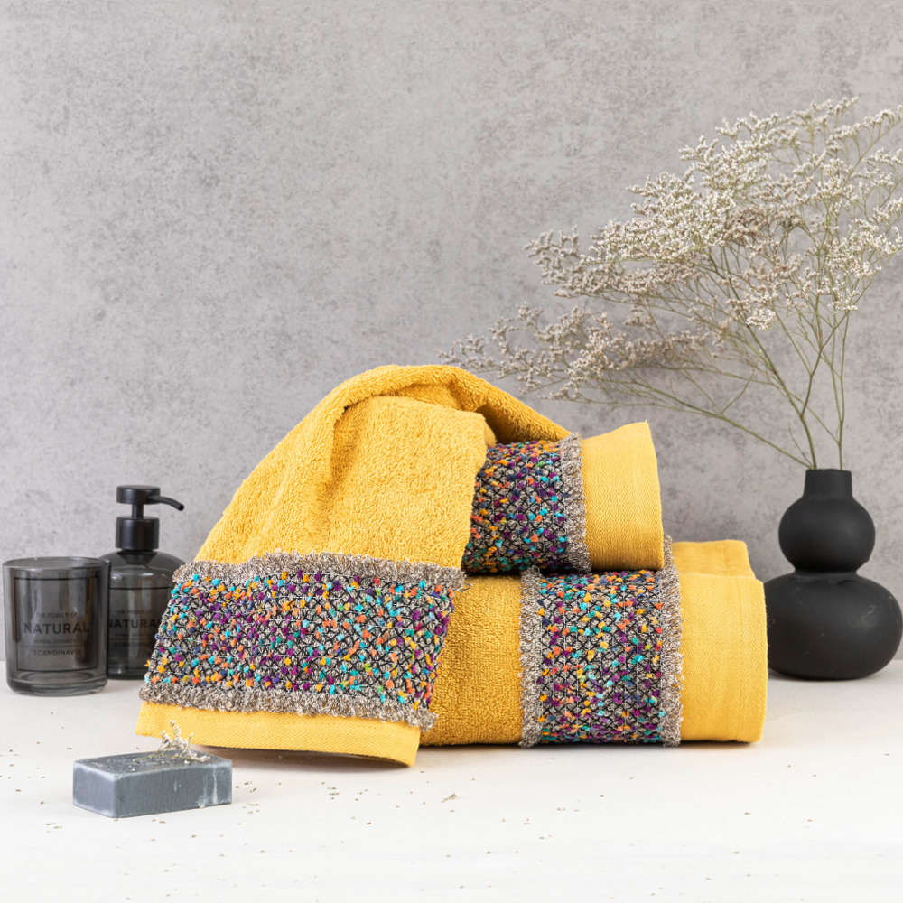 Σετ πετσέτες 2 τεμαχίων, προσώπου και χειρός, από ύφασμα φροτέ, πενιέ, 100% βαμβακερό, με διακοσμητική σενίλ δαντέλα. Διατίθεται σε 4 χρώματα.