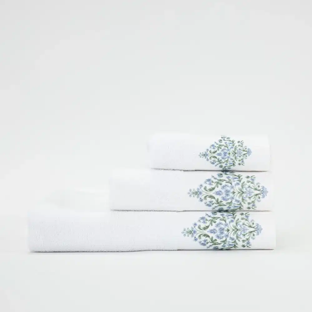 Σετ πετσέτες 3 τεμαχίων, μπάνιου, προσώπου και χειρός, από ύφασμα φροτέ, πενιέ, 100% βαμβακερό, με ψηφιακή εκτύπωση.Διατίθεται σε 2 χρώματα.