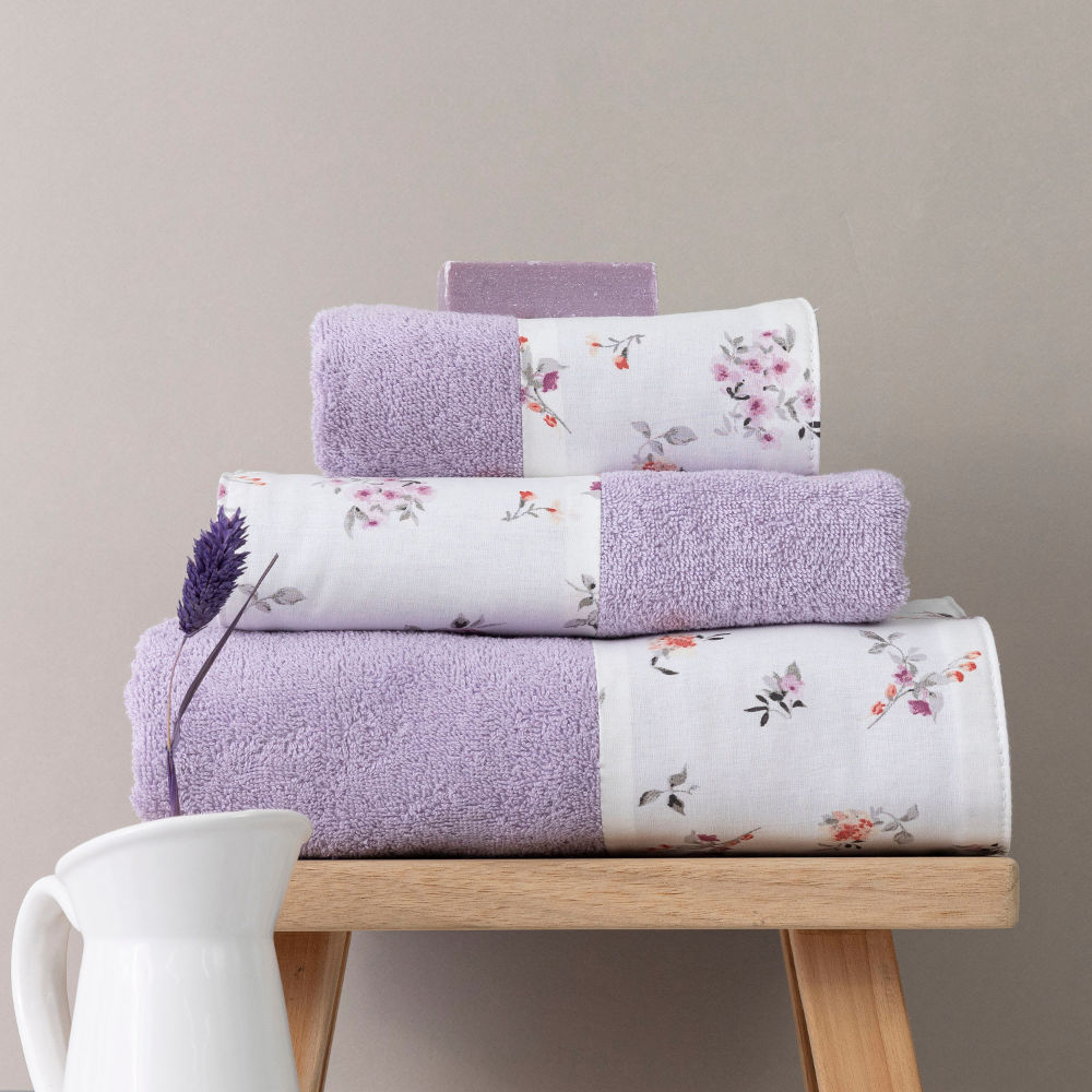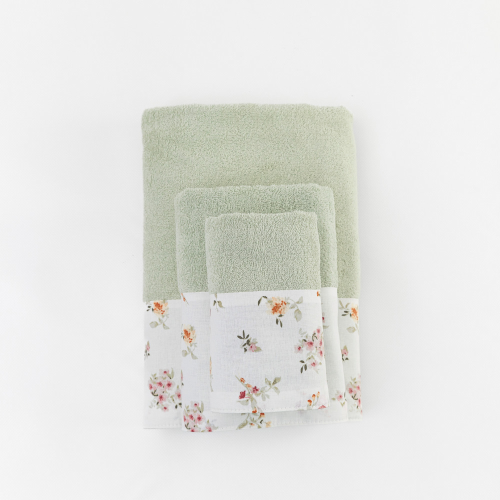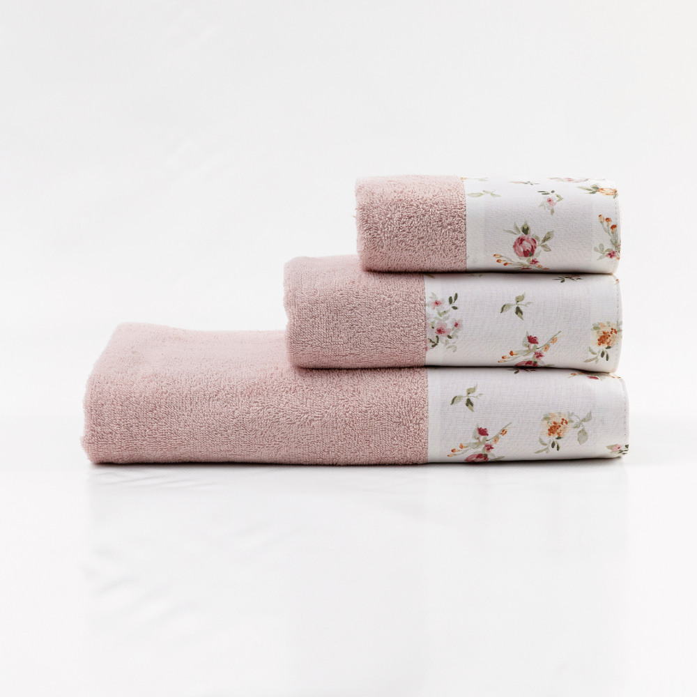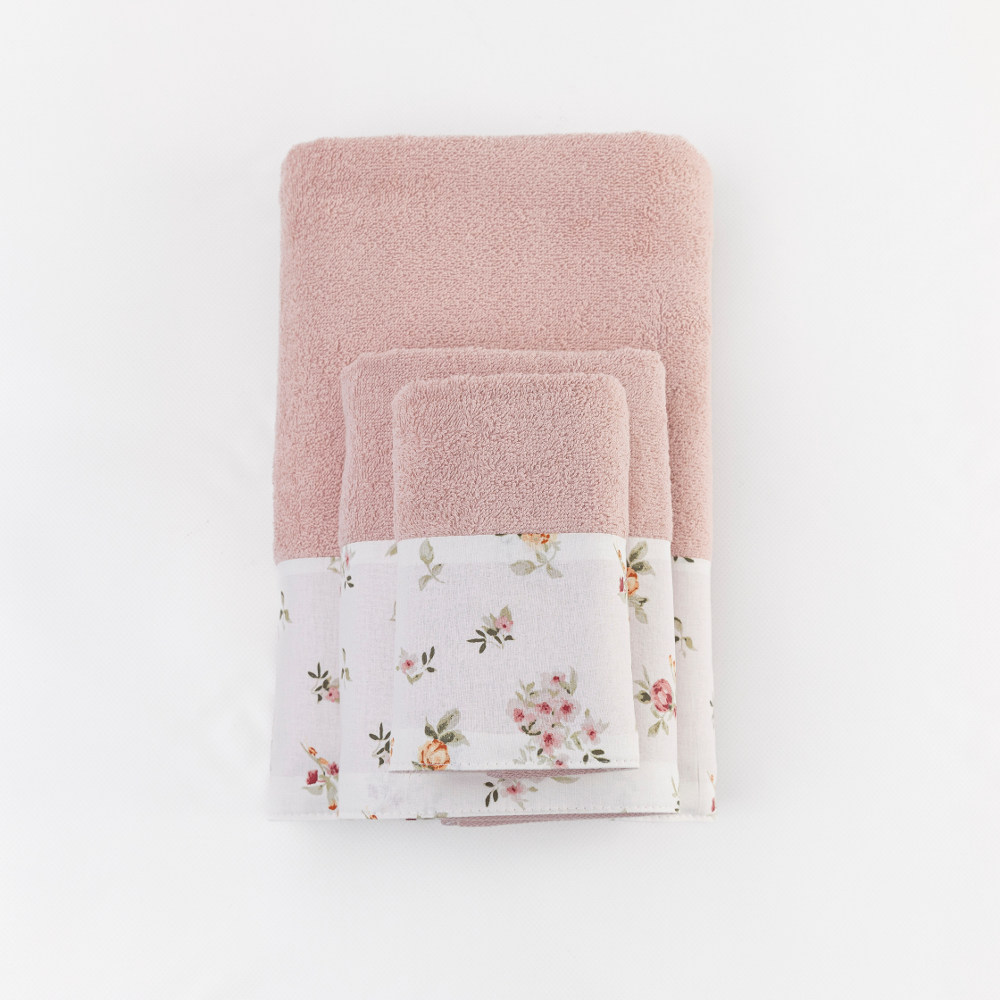Σετ πετσέτες 3 τεμαχίων, μπάνιου, προσώπου και χειρός, από ύφασμα φροτέ, πενιέ, 100% βαμβακερό, με διακοσμητική φάσα ύφασμα.Διατίθεται σε 4 χρώματα.