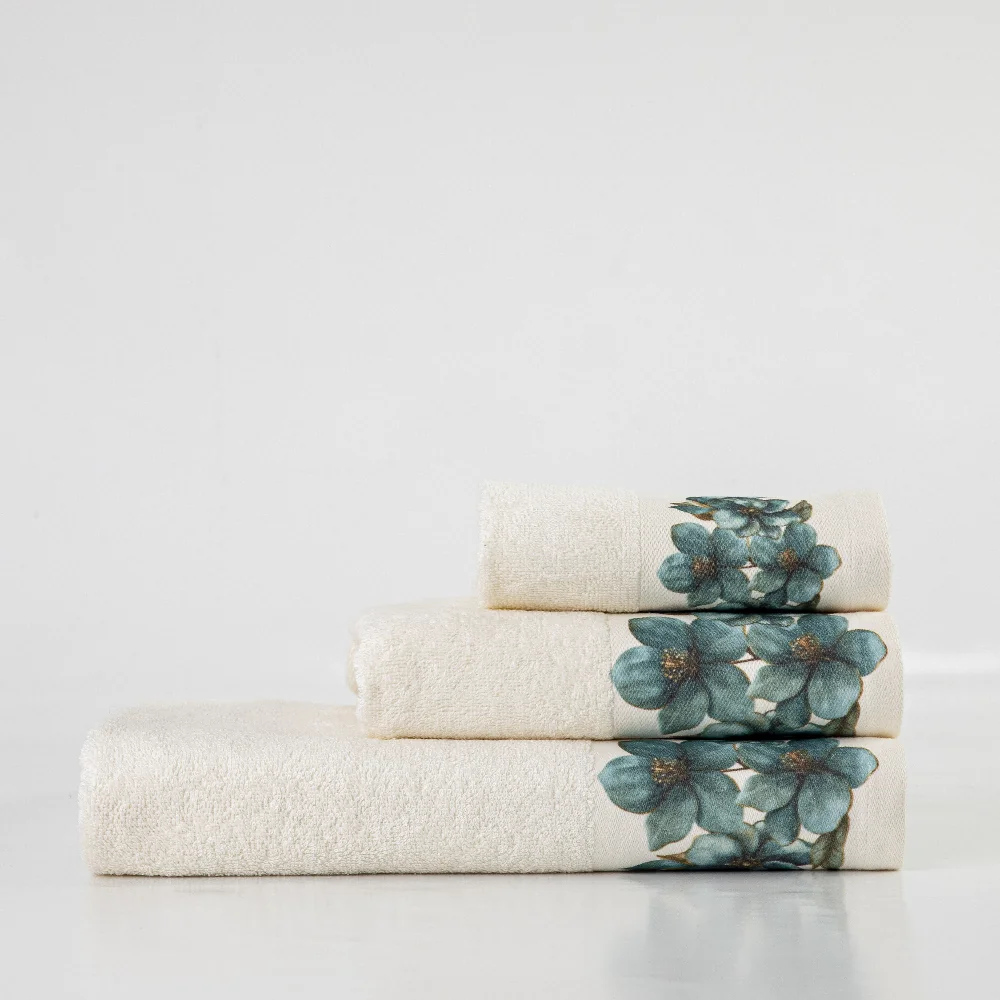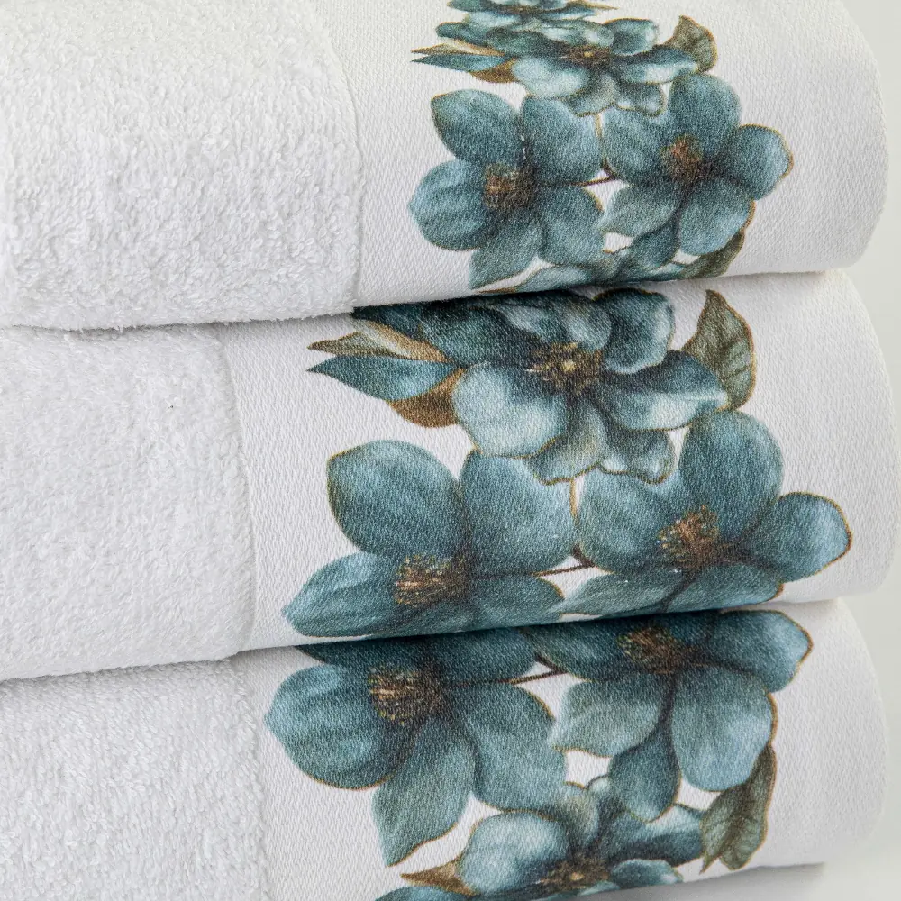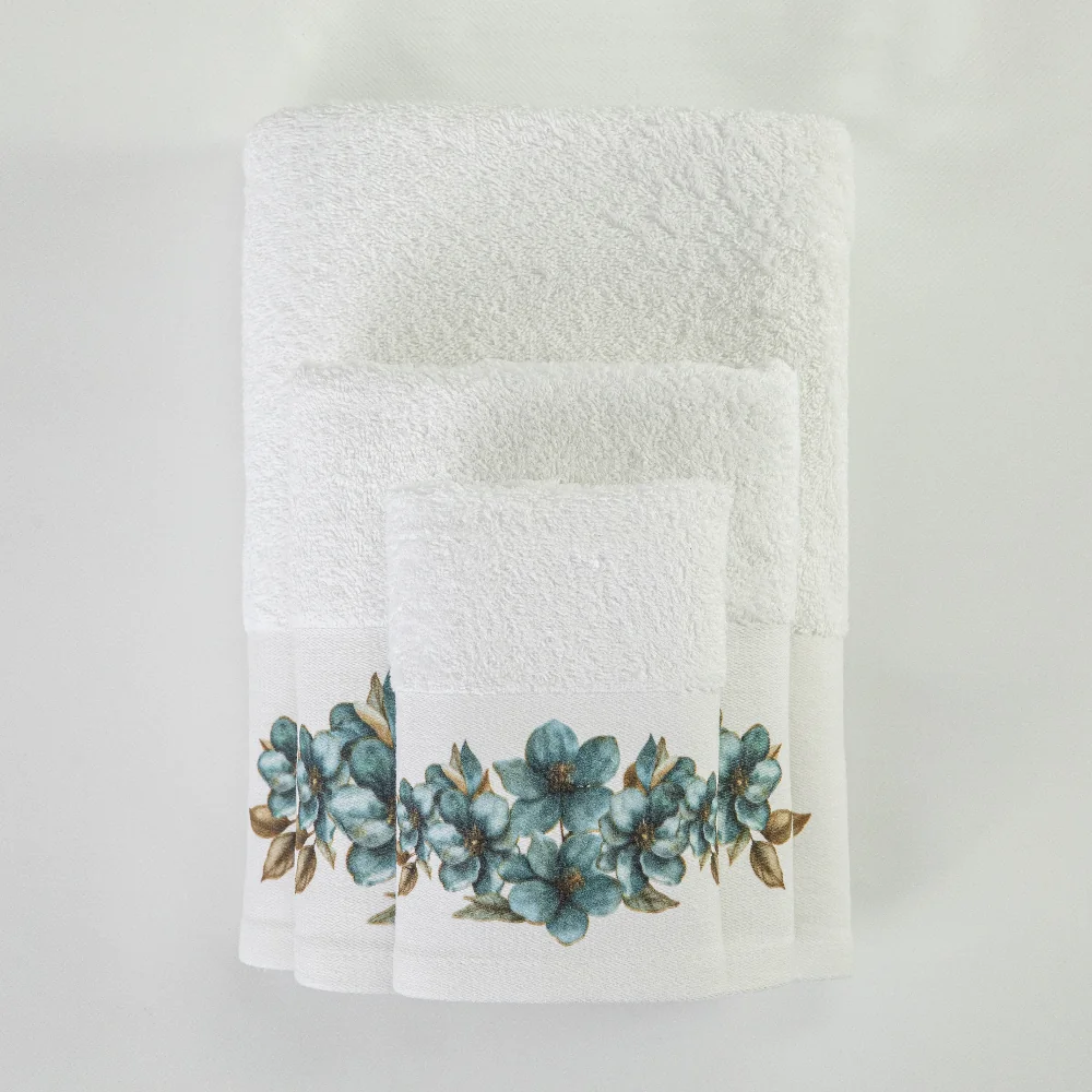 Σετ πετσέτες 3 τεμαχίων, μπάνιου, προσώπου και χειρός, από ύφασμα φροτέ, πενιέ, 100% βαμβακερό, με ψηφιακή εκτύπωση.Διατίθεται σε 2 χρώματα.