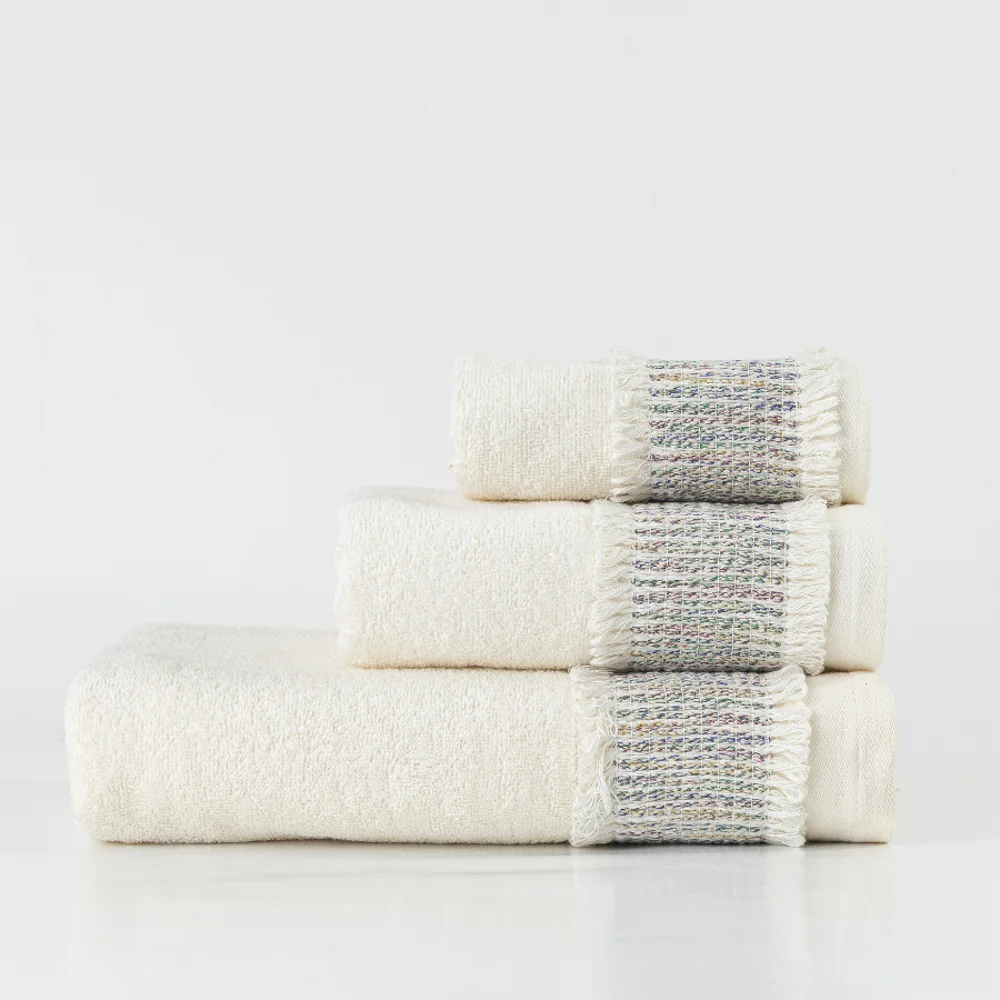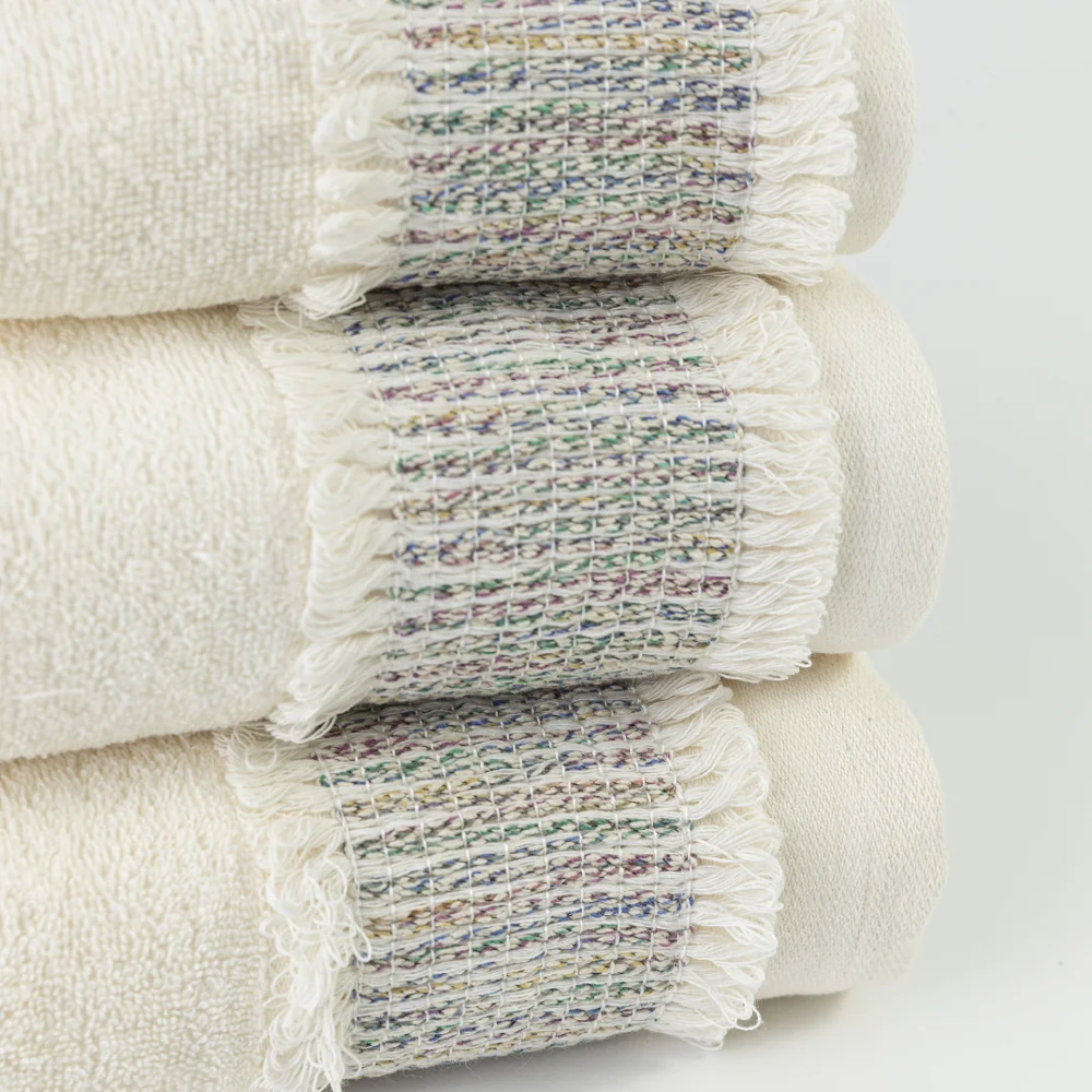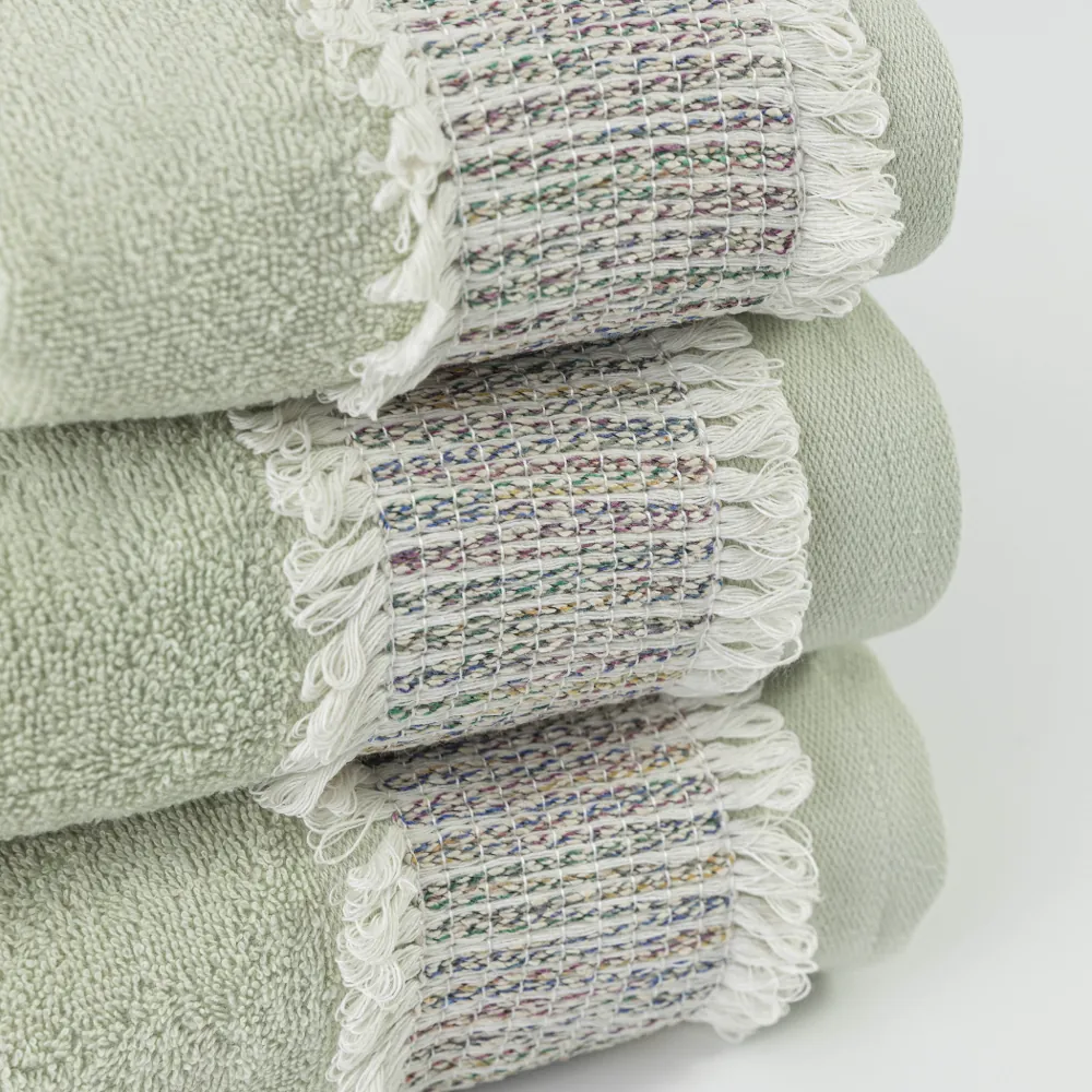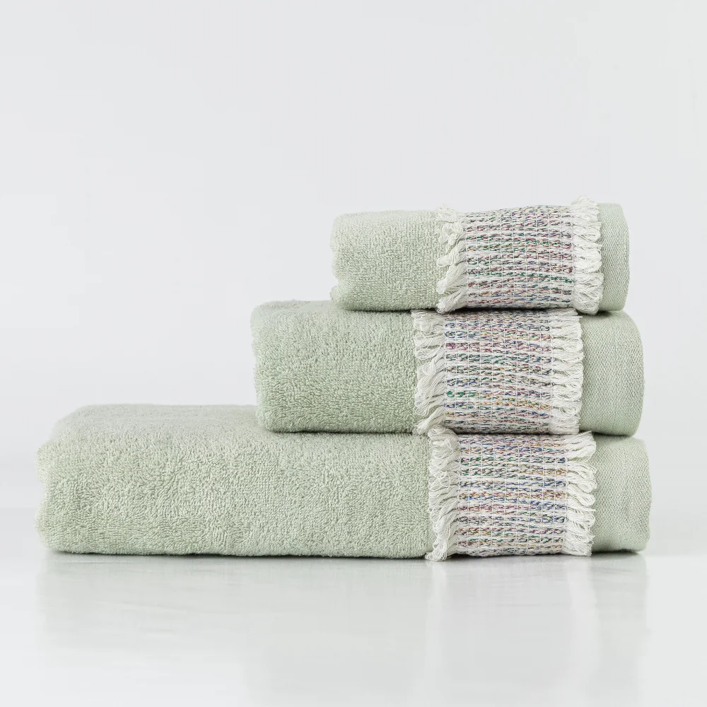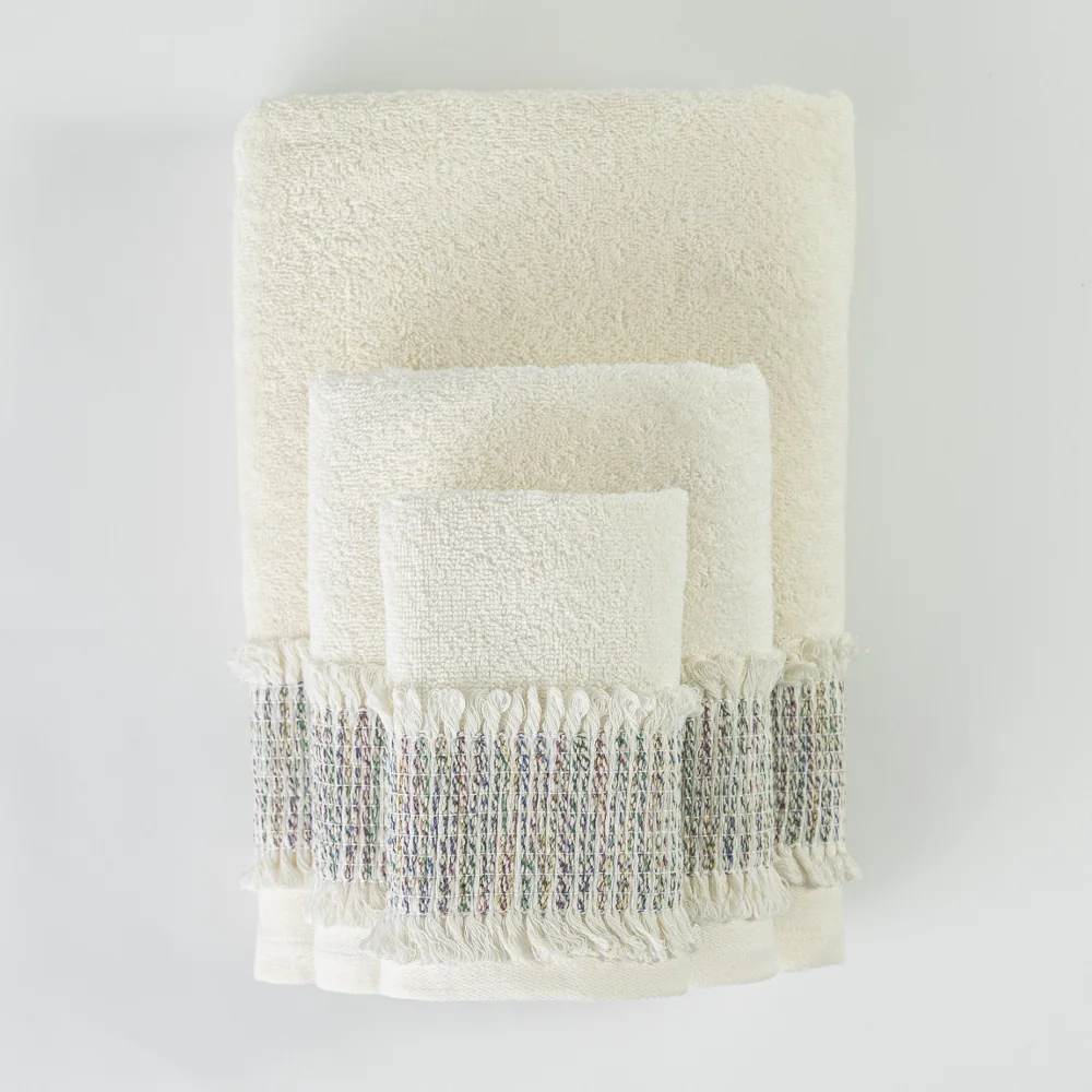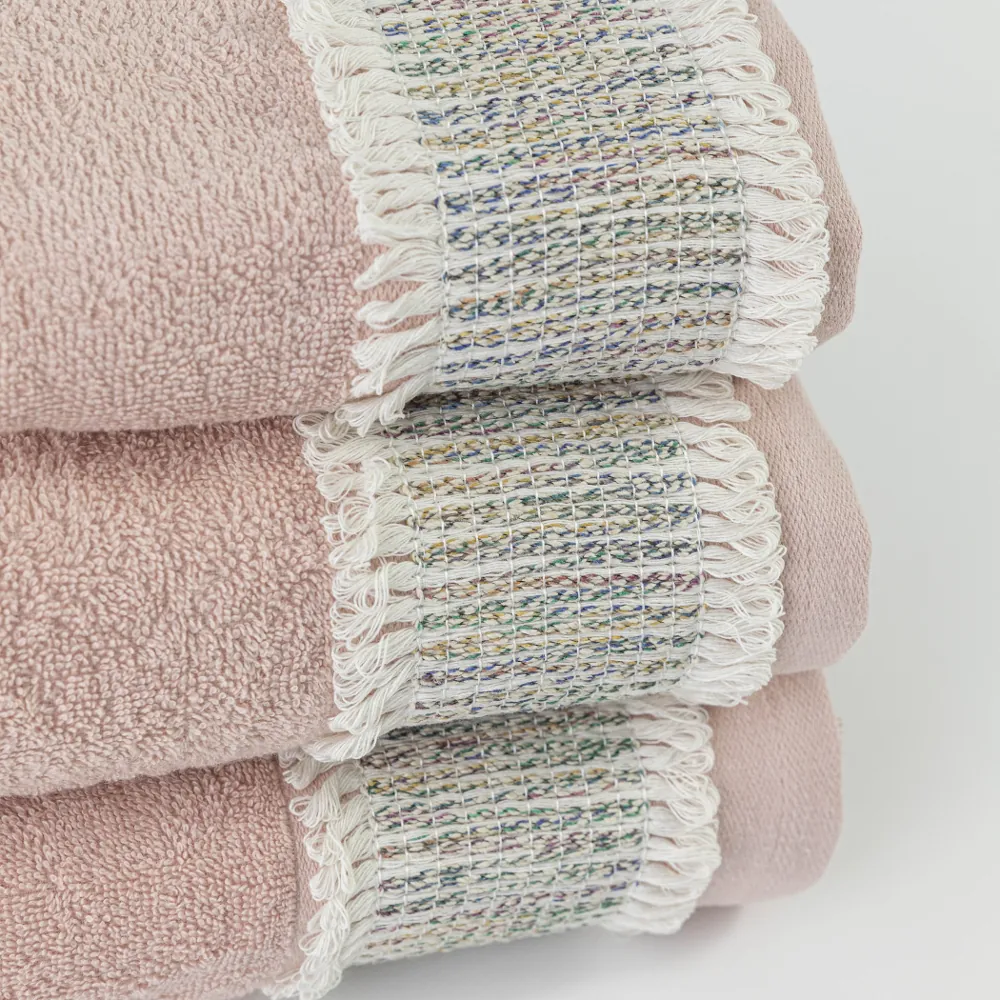 Σετ πετσέτες 3 τεμαχίων, μπάνιου, προσώπου και χειρός, από ύφασμα φροτέ, πενιέ, 100% βαμβακερό, με διακοσμητική πλεχτή δαντέλα. Διατίθεται σε 4 χρώματα.