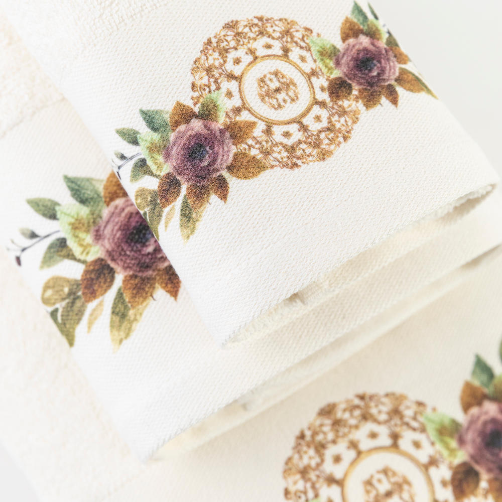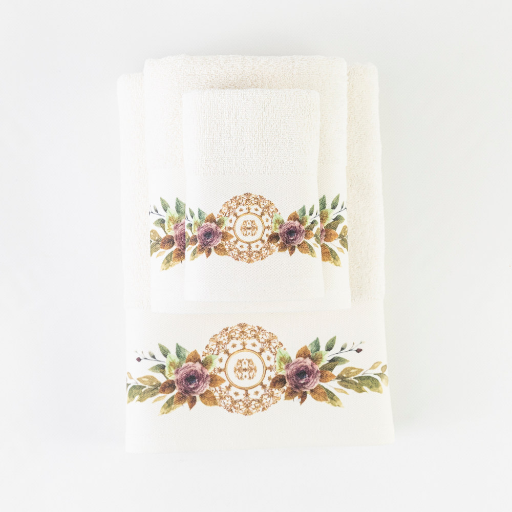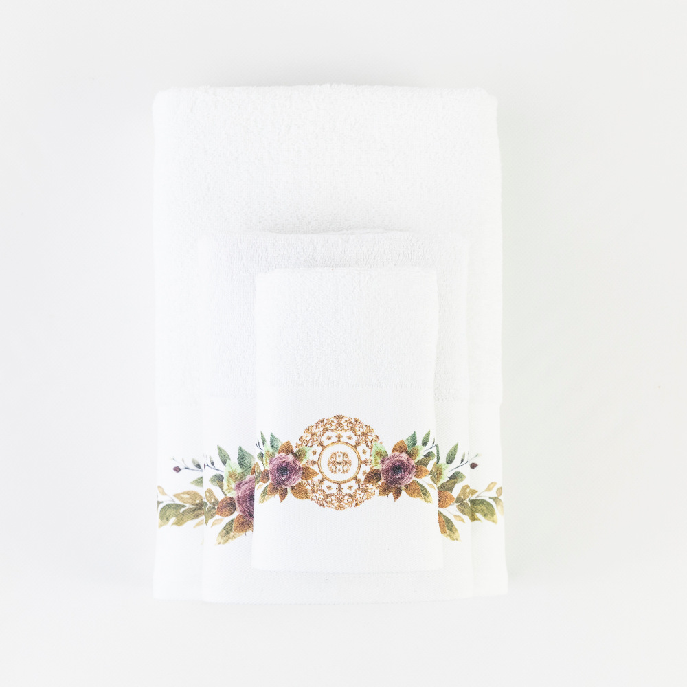 Σετ πετσέτες 3 τεμαχίων, μπάνιου, προσώπου και χειρός, από ύφασμα φροτέ, πενιέ, 100% βαμβακερό, με ψηφιακή εκτύπωση.Διατίθεται σε 2 χρώματα.