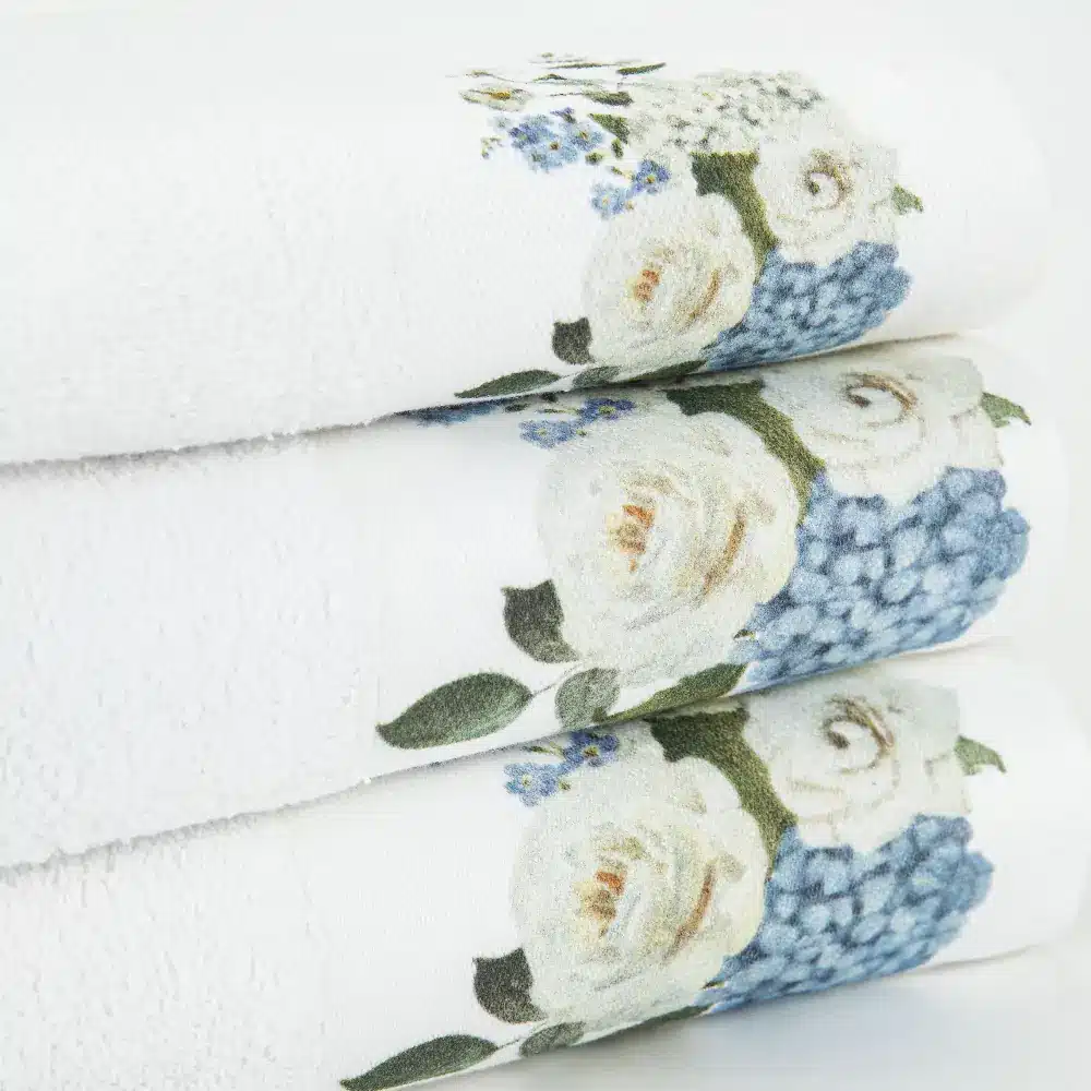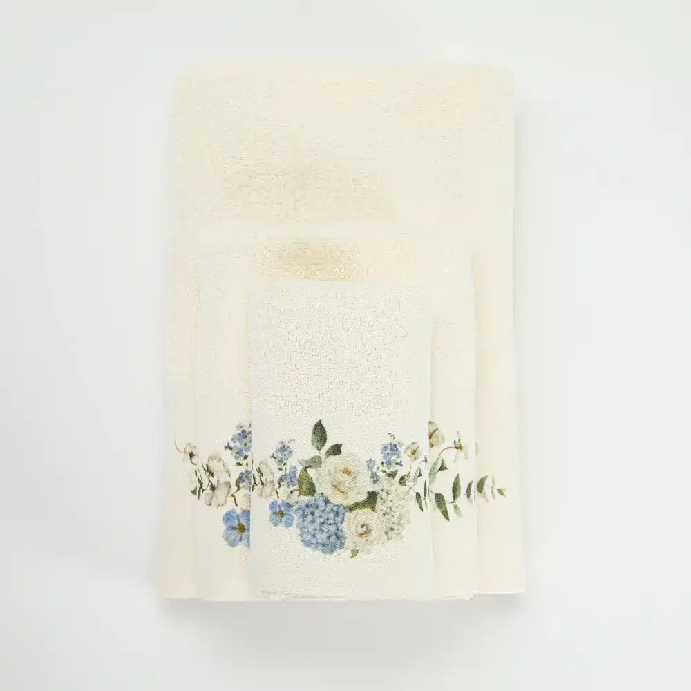 Σετ πετσέτες 3 τεμαχίων, μπάνιου, προσώπου και χειρός, από ύφασμα φροτέ, πενιέ, 100% βαμβακερό, με ψηφιακή εκτύπωση.Διατίθεται σε 2 χρώματα.