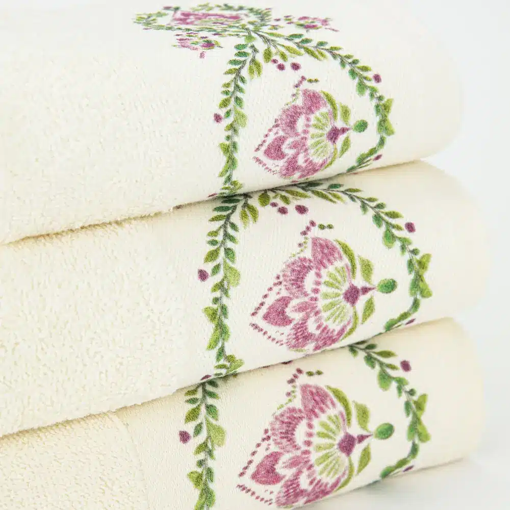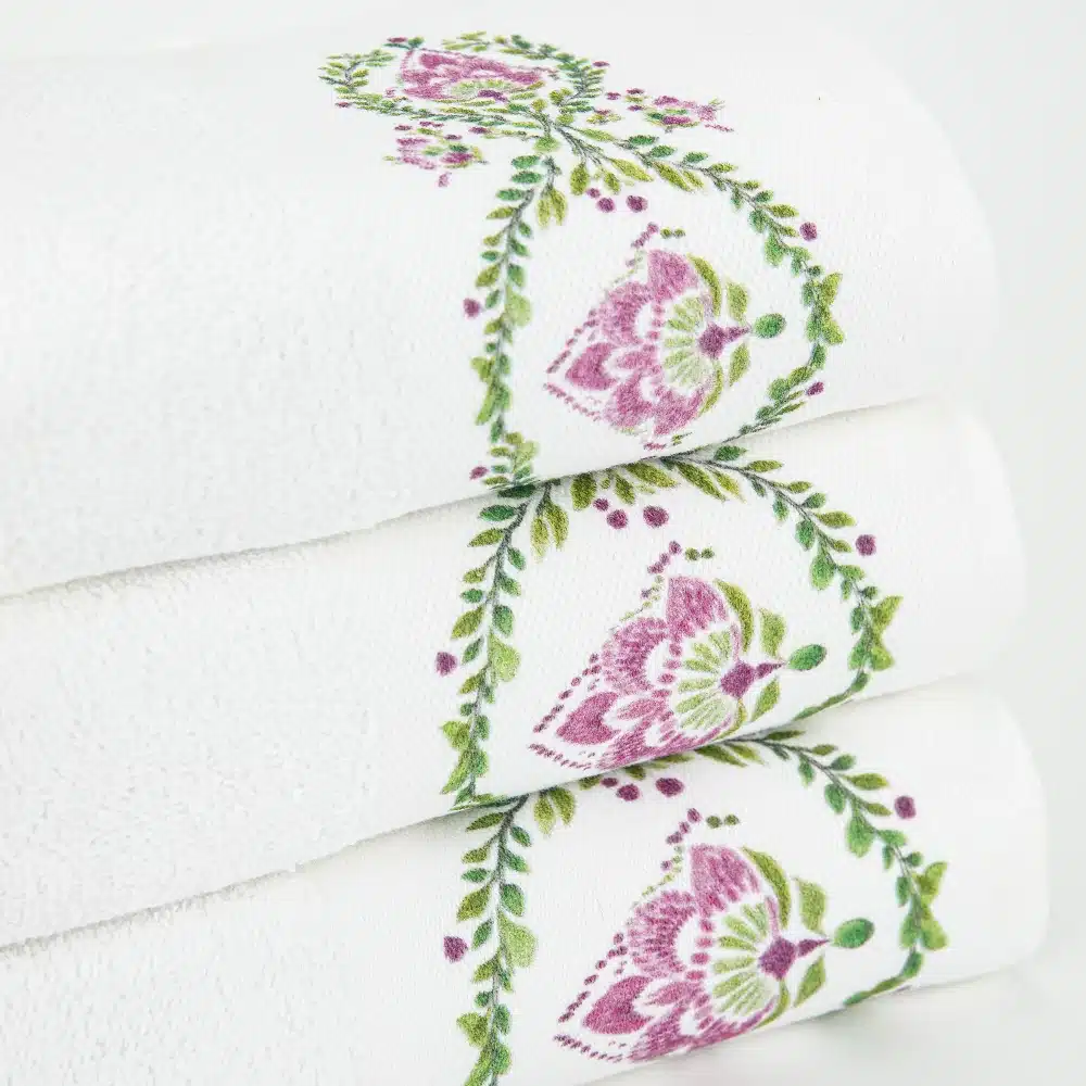 Σετ πετσέτες 3 τεμαχίων, μπάνιου, προσώπου και χειρός, από ύφασμα φροτέ, πενιέ, 100% βαμβακερό, με ψηφιακή εκτύπωση.Διατίθεται σε 2 χρώματα.