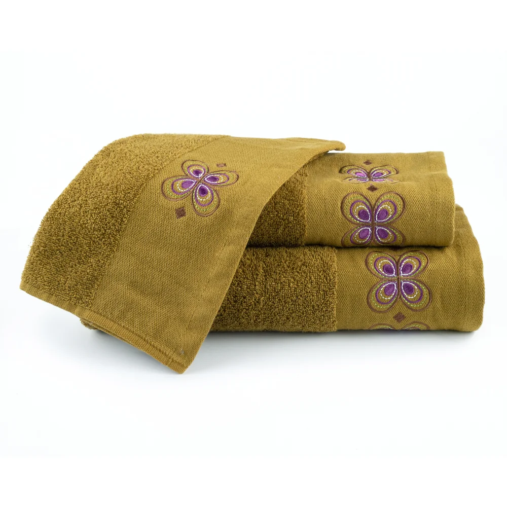 Σετ πετσέτες 3 τεμαχίων, μπάνιου, προσώπου και χειρός, από ύφασμα φροτέ, πενιέ, 100% βαμβακερό, με κέντημα.Διατίθεται σε 3 χρώματα.