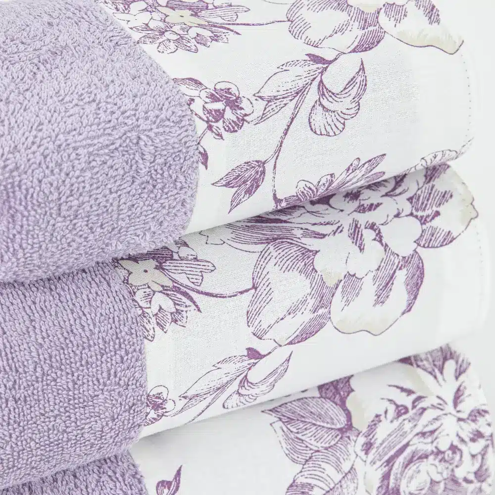 Σετ πετσέτες 3 τεμαχίων, μπάνιου, προσώπου και χειρός, από ύφασμα φροτέ, πενιέ, 100% βαμβακερό, με διακοσμητική φάσα ύφασμα. Διατίθεται σε 4 χρώματα.