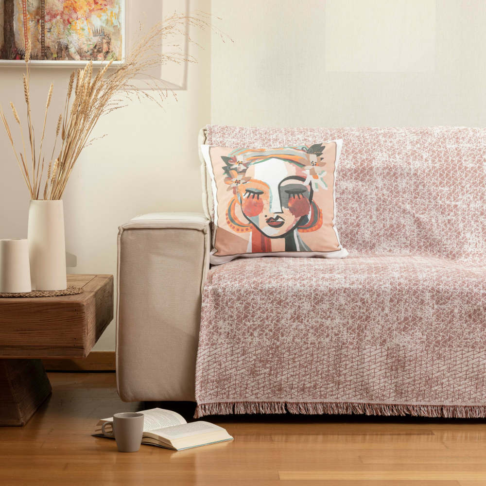 Καλοκαιρινό ριχτάρι διθέσιο, από ύφασμα 100% βαμβακερό, εμπριμέ με μπορντούρα και κρόσσι. Διαθέσιμο σε 4 διαφορετικά χρώματα.