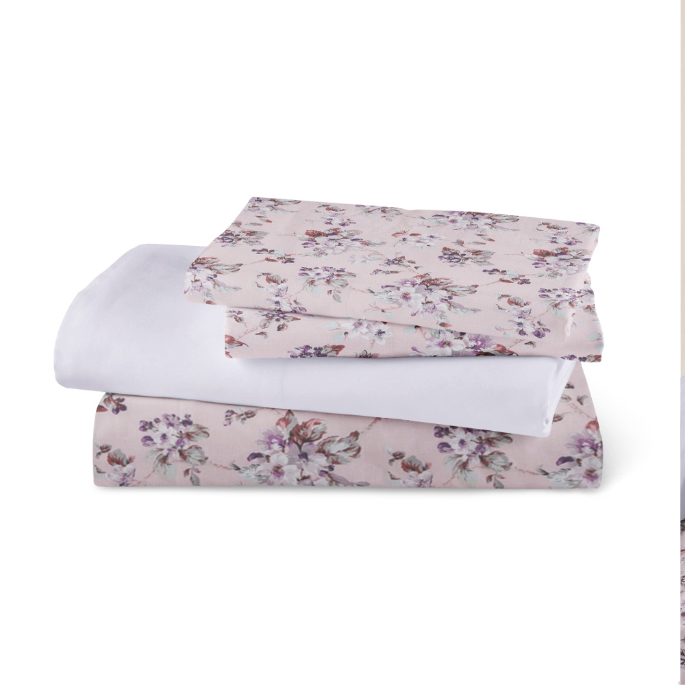 Σεντόνια Εμπριμέ Σετ Αγριολούλουδο Ροζ Υπέρδιπλα